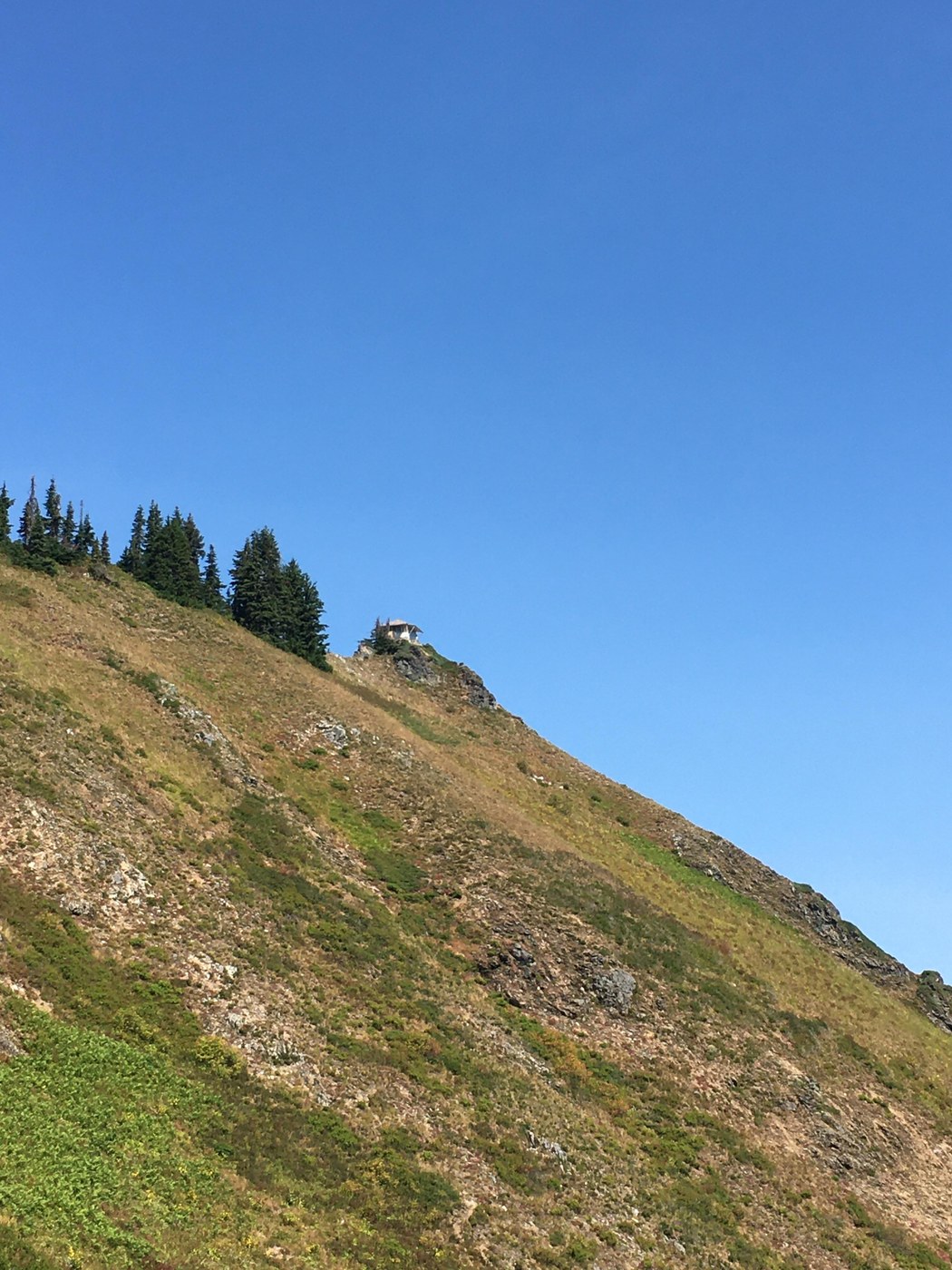 This is steep. It's either steep in the shade of the forest, or steep in the open sun. But it's only a mile and a half to the top, and well worth it for the 360 view. Still plenty of huckleberries and blueberries as incentive to keep going. It's dry out there: Glacier Peak was a big brown rock. Very hazy, presumably from fire smoke.