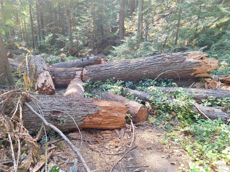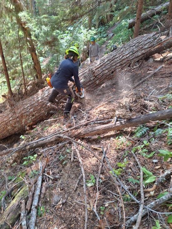 A four-person Gray Wolf trail crew spent Labor Day week removing fallen trees from its namesake trail in addition to clearing the Three Forks trail down from the Deer Park campground. The Gray Wolf trail is now free of fallen trees from the Olympic Forest / Park boundary up to Falls Camp. Later this month, another crew will head in to clear the trail from the Slab Camp bridge to the ONF/ONP boundary.
