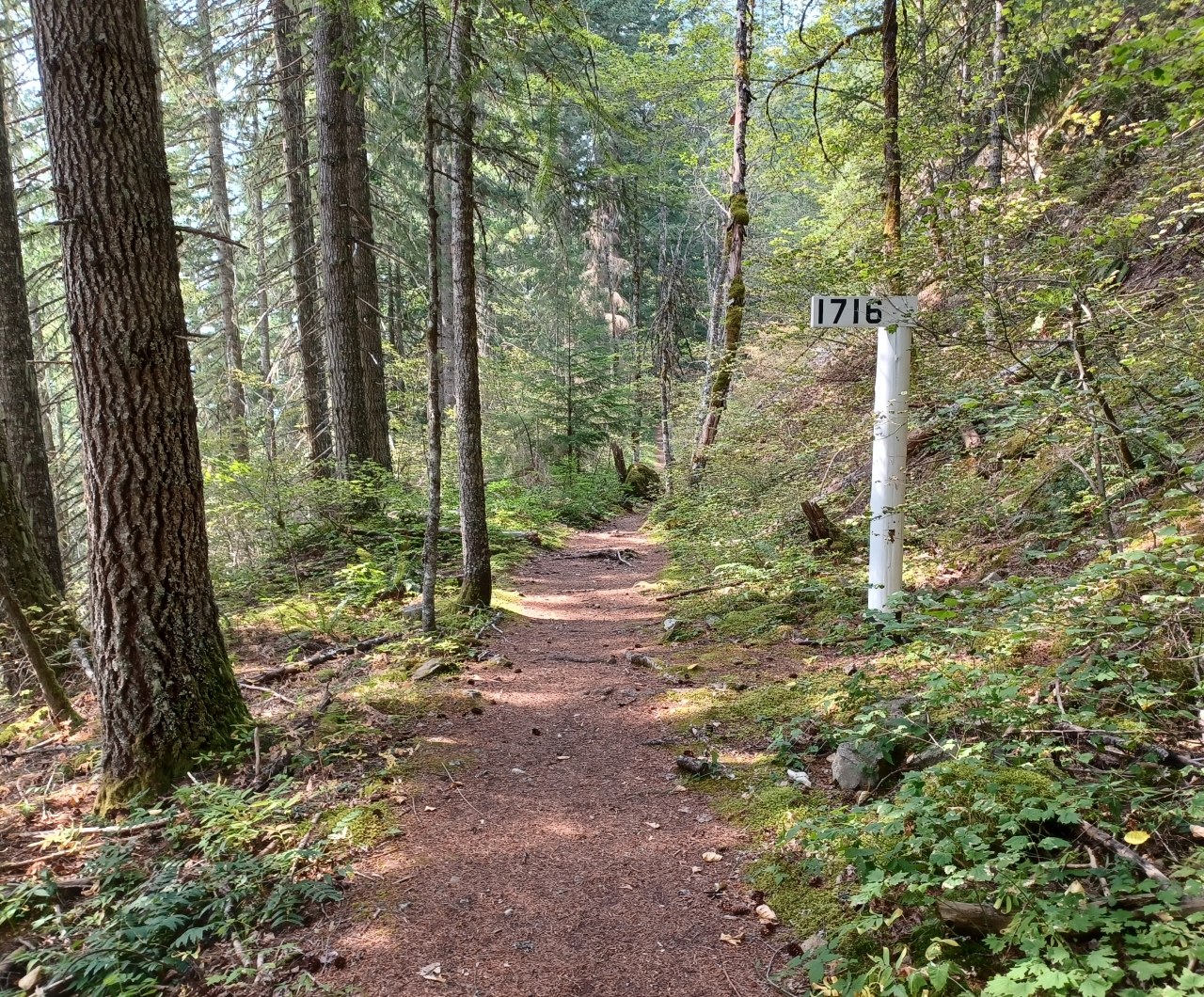 I arrived at the Scenic Trailhead off of Highway 2 around 7:45 AM to join a WTA work party today. There was only one other car in the parking area. There are privies at the trailhead and they are in good shape. There isn't any signage about whether a pass is needed to park but I displayed my Forest Service pass just to be safe.