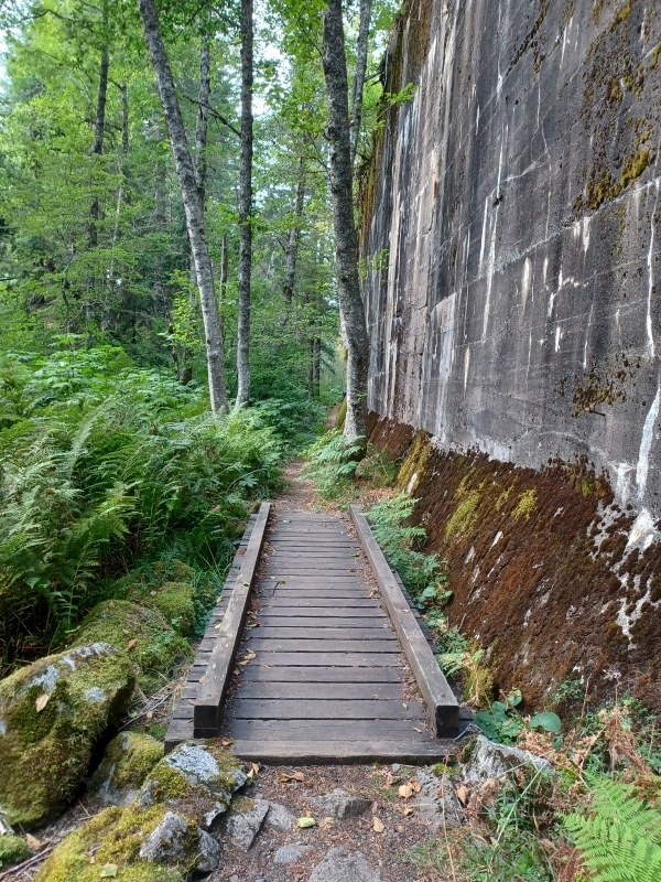 Our work party was about two miles away from the trailhead, so we assembled in the parking lot and walked about two miles along the Lower (ADA Accessible) Trail to find our tools. From there, we worked on clearing brush back from the trail and cleaning out drains along the next mile of trail, eventually working our way to the Martin Creek Trailhead to stash our tools so our crew leader could come pick them up after the work party. The Lower Trail is in good shape and it is about 3 miles from the Scenic Trailhead to the Martin Creek Trailhead.