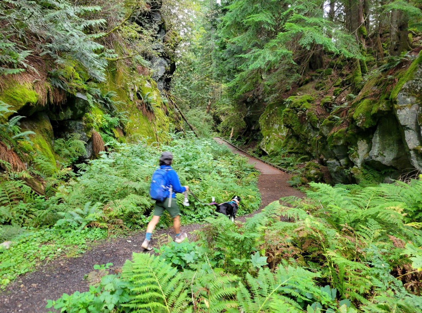 We started at the upper trailhead off of Martin Creek. The plan was to walk the upper branch, hike the steep cutoff to Scenic TH then back. We turned around on the upper branch because it was a bit too brushy for shorts. It would be no problem in long pants.