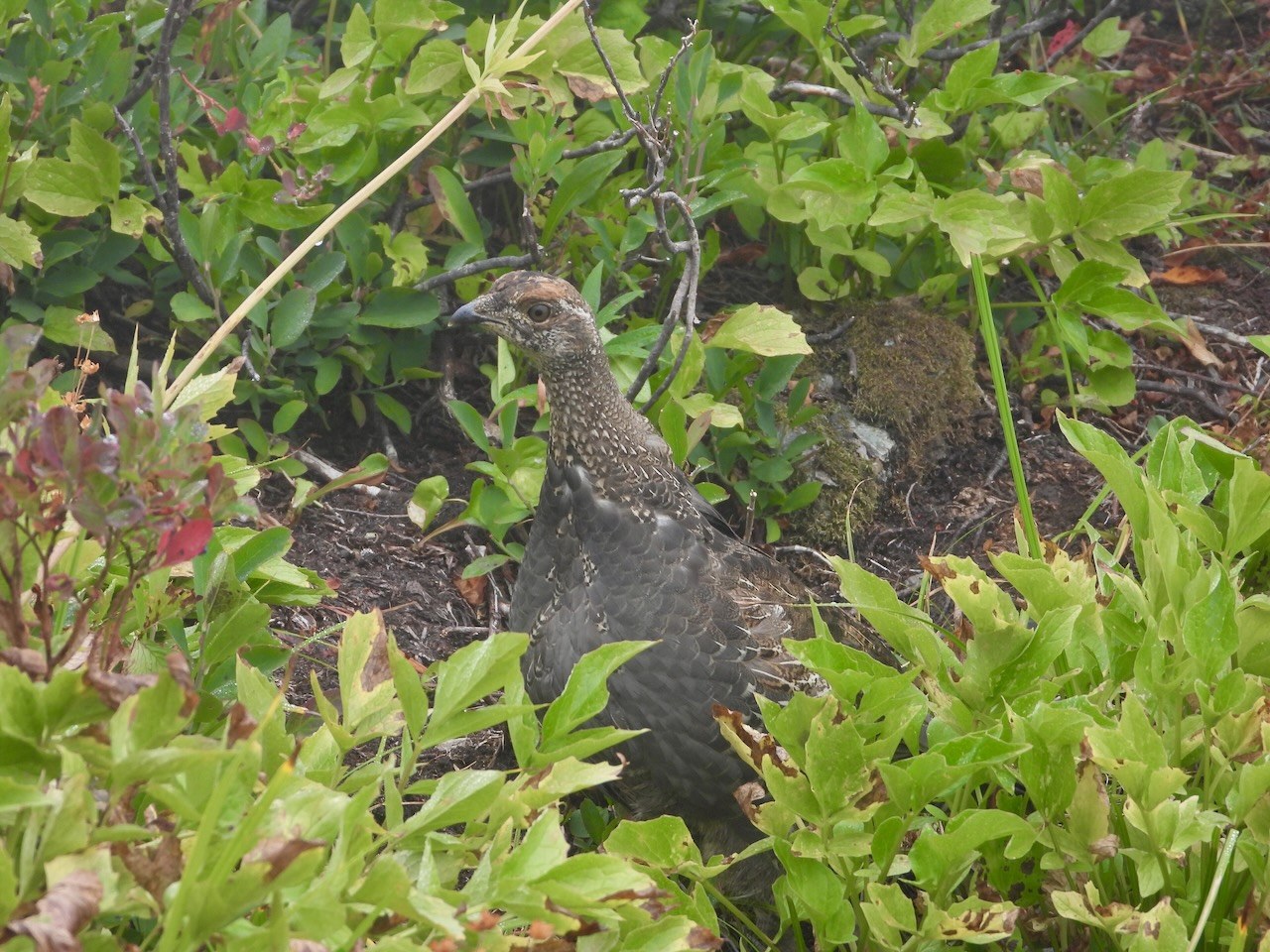 It was foggy the entire time I was here. I was hoping the sky would clear but nope, not today. This caused me to focus more on the vegetation and animals that could see. The hillsides are packed solid with plants and flowers that are displaying muted fall colors. If it had been sunny the colors of the plants would have been entirely different. Lots of birds seen mostly foraging seeds. I saw several marmots and pikas. No views at the top nor could I see the lake. I descended toward the lake but I gave up when it became clear that the fog was not going to lift.