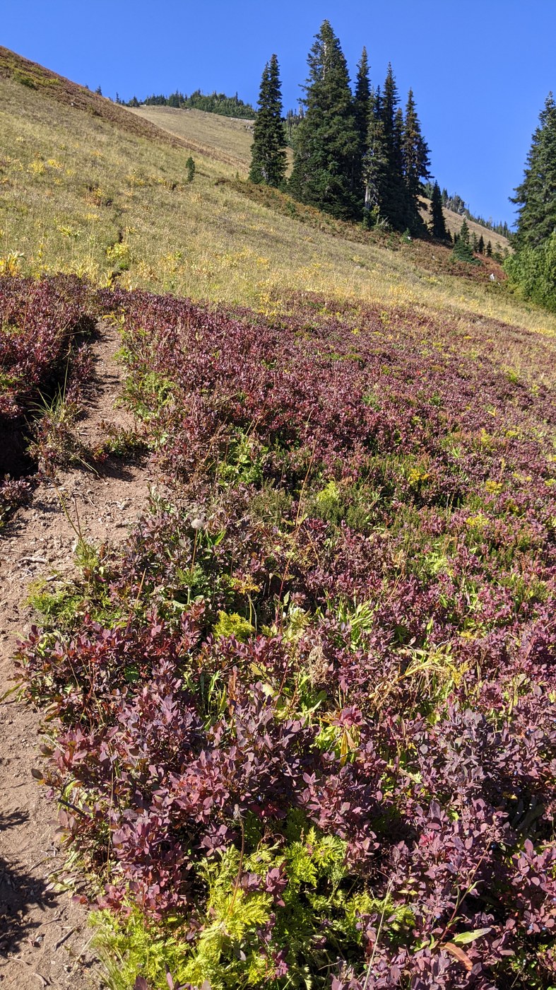 DATA. On this lovely Thursday, on the trail I saw just one person all day, a hiker coming down as I went up. Including my car: 4 cars in the Owyhigh Lakes TH lot at 9:30 am, 2 cars at 5:30 pm. (Does everyone know you no longer need a permit to enter at Sunrise on weekdays?)