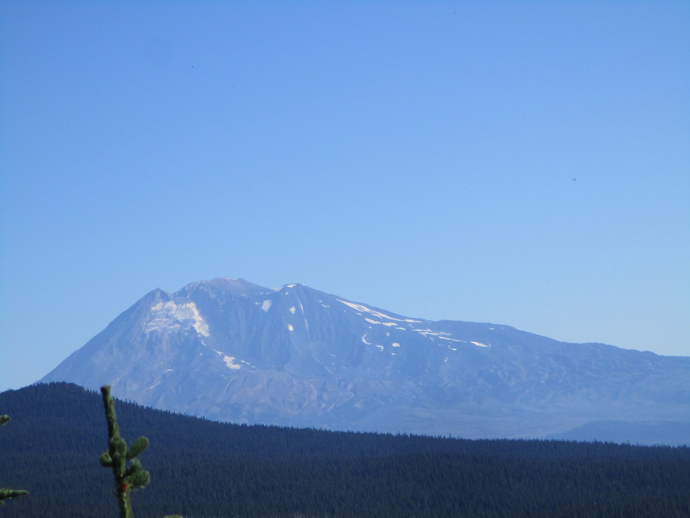 We followed the PCT as it gradually gained elevation to enter Indian Heaven Wilderness and reach the turnoff to Indian Racetrack. From the racetrack, the trail to Red Mountain is steep, especially near the top. The lookout’s empty, locked, and shuttered, but you can access the wrap-around deck. The views of Hood, Saint Helens, Adams, and Rainier made it worthwhile. Very sad, though, to see so little snow and ice left on those peaks.