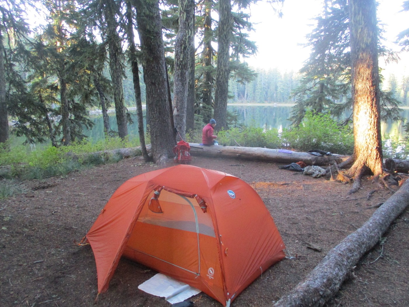 The next day we hiked over Berry Mountain past Blue Lake to Elk Lake. There’s a few brushy sections on Berry Mountain. Only two step-over blowdowns on the PCT between Crest Camp and Blue Lake. There were no other campers at Elk Lake, so we had the whole lake to ourselves. Barred owls started hooting at each other in the middle of the night and woke us up. They were probably making fun of our big packs!