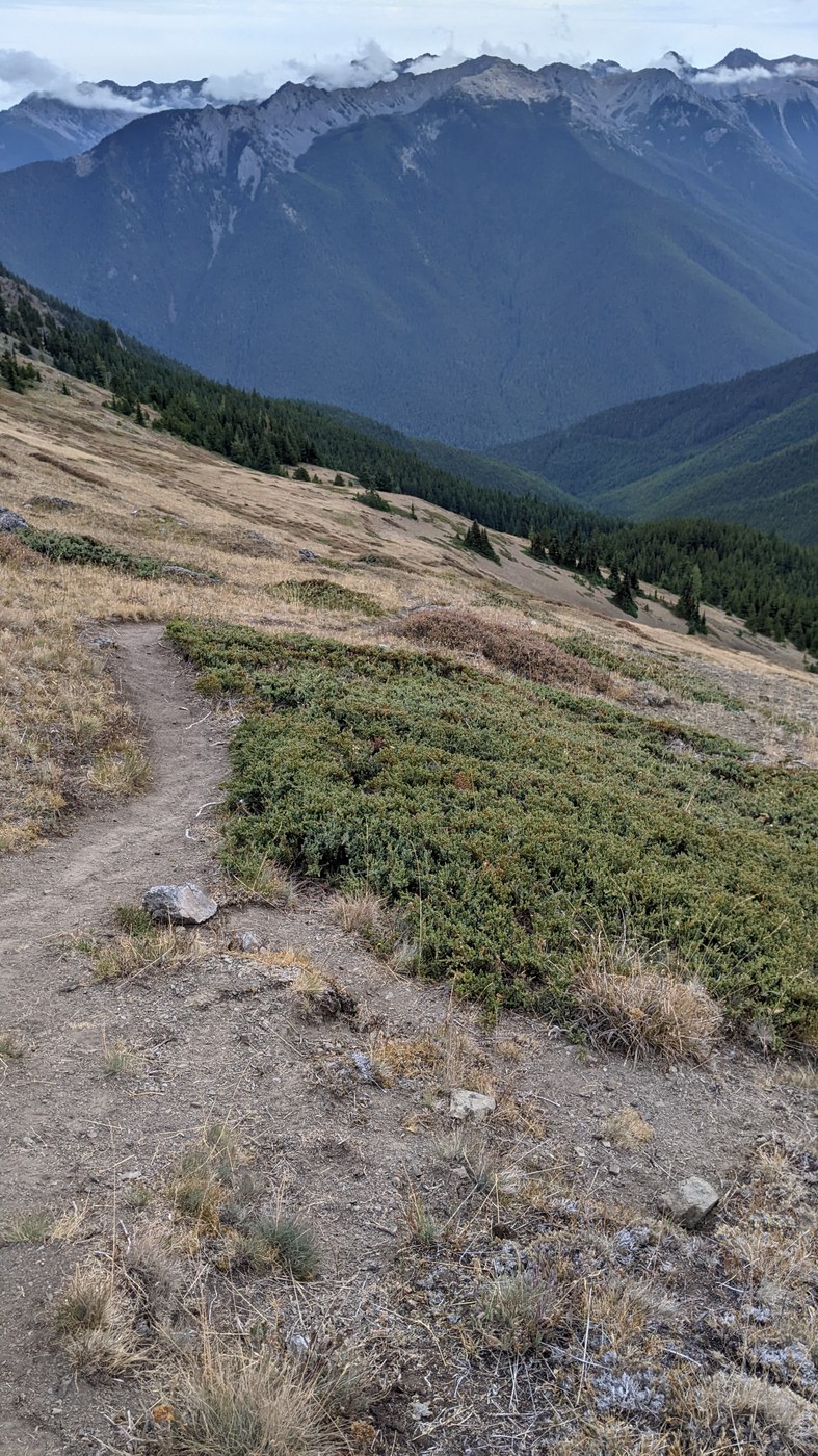 In this dry, no-snow setting there are no route finding issues. In the forest segment, the trail often splits to two options; it's usually easy to see the less direct (more switchbacky), more trail-sustainable option. Anyway, all roads lead to Rome.