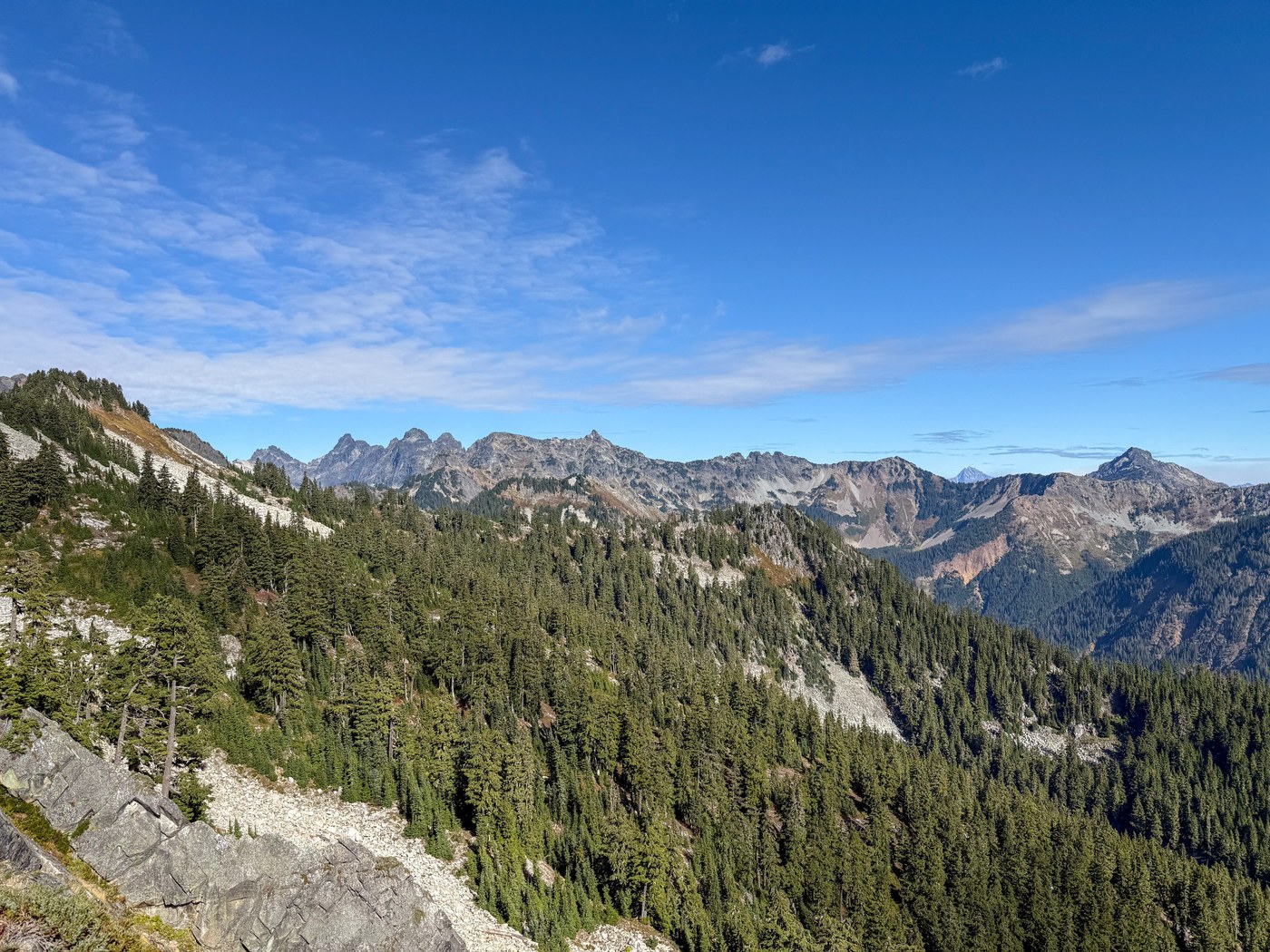 There are vivid fall colors along the trail now, especially after the first ~4 miles once you begin ascending out of the denser forest and along the rockier switchbacks. Still a few berries on the vines though they looked like they're a week or two past their season. Great views of Mt. Rainier and other surrounding peaks as always.