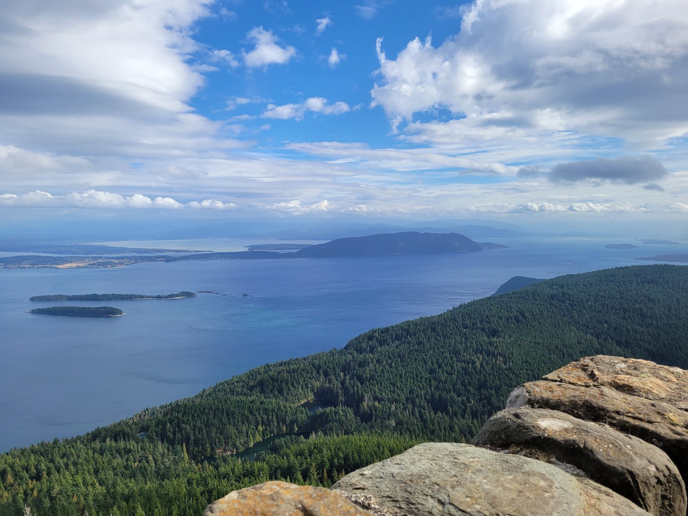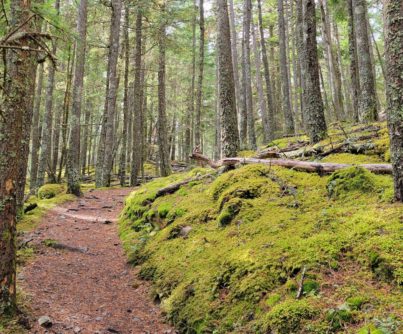 We did an out and back hike following the Little Summit trail from Mountain Lake. The trail climbs steeply for the first mile and then mellows out after the junction with Little Summit. Head right at the junction and continue for two more miles to the top of Mount Constitution. This trail is well signed and in great condition. The moss is plentiful!