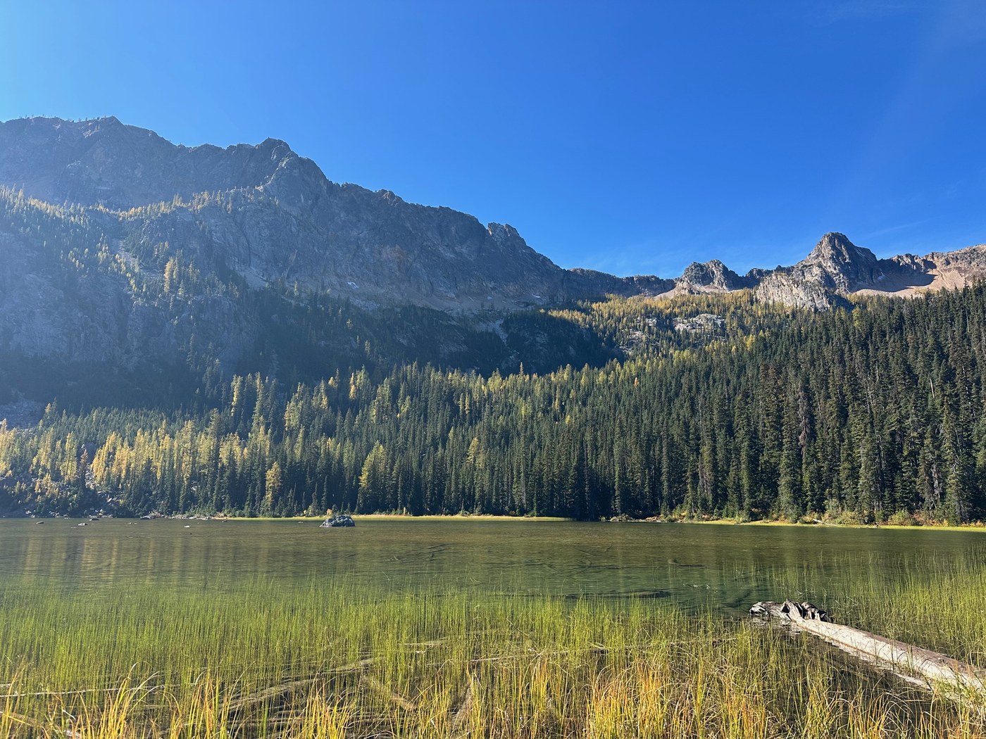 Crowded trailhead but not too wild. Most larch seekers hit Maple Pass or Blue Lake. This hike is great with kids or your parents, bring all three generations on this one. Lots of cars with frost on them from overnighters.