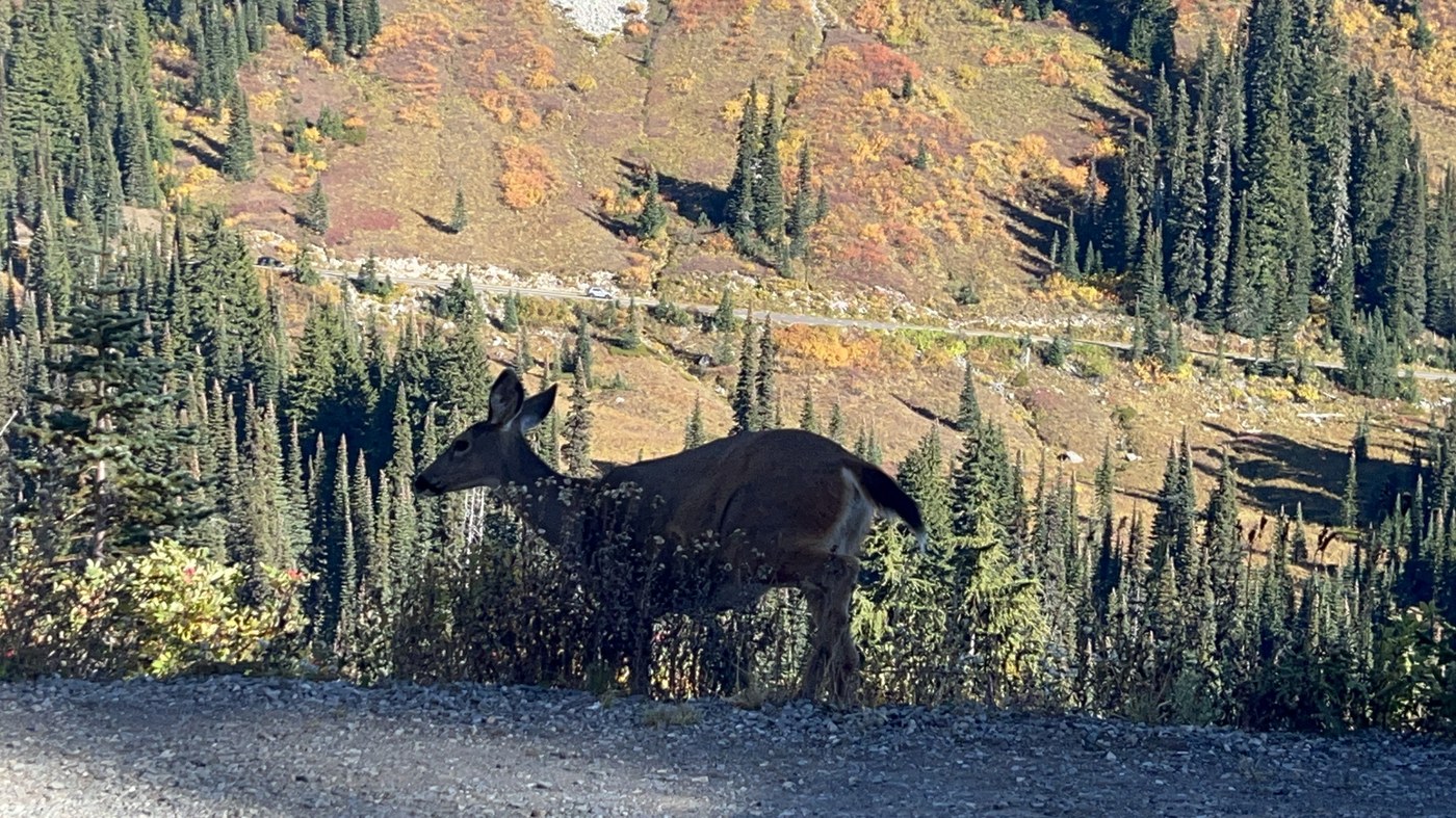 Holy Toledo. I’ve been to Paradise many, many times but today was a complete zoo. People illegally parking cars in motorcycle spots, creating parking spots, parking at wrong angels, and parking where park officials parking is. I saw dogs on the trail, people on meadows, and I cannot believe the amount of people there were. The reds are past their prime but if you go below Paradise they are still in all their glory. Consider Box Canyon - quieter and the colors are stunning. I happened to stop at Paradise on my way out from a multi day backpacking trip. I would personally pick a different part of the park to visit. It was insane! *I included pics of wildlife right next to the road. Please, please drive slowly when arriving and departing the park. A lot of animals are right on or next to the road.