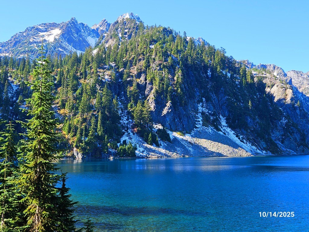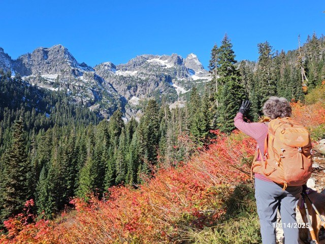 Autumn colors are awesome even though many of the trees have already lost their leaves. Some areas of water on the trail and mud - not difficult to avoid (mostly). This short report is to let you know about the icy conditions once you're over the pass and descend to the lake. That hillside faces north, receives little sun exposure at this time of year and, unlike the remainder of the trail, the rocks & gravelly surface of the tread were covered in ice when we were there at 12noon.