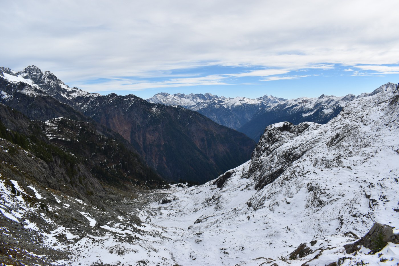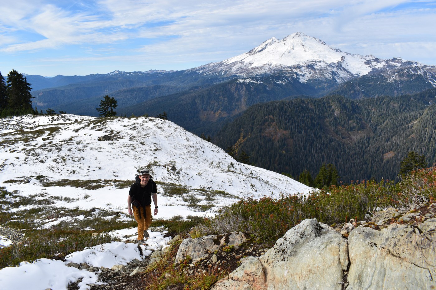 Trail: Snow started on the last 1/4 of trail along once you start going north on the ridge. For the most part the snow was very minimal and just piled up in snowdrifts around Sulphide Point and the NPS boundary. Views begin around that NPS boundary. Mt. Baker is right there! E