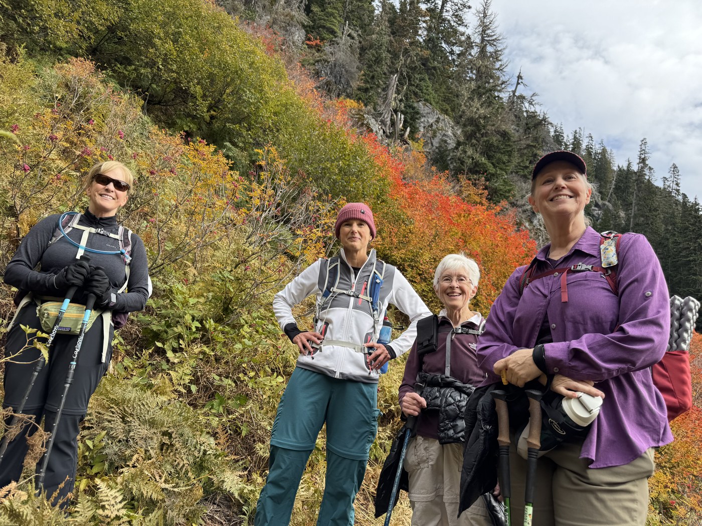 We had a great fall hike to Melawka Lake today a great combination of dry weather and remaining fall colors at high elevation. We pulled into the Denny Creek / Franklin Falls Th parking lot at 9:45, only 4 other cars were in the lot. It was 46 degrees with partially sunny skies. The vault toilets were open, clean and stocked with supplies. I haven’t hiked to Melawka Lake since 2022 and it was great to see all the trail improvements the last couple years. The entire trail is now saturated, well drained soil. Brilliant orange red foliage on vine maples, huckleberry and blueberry plants still dot the hill sides. Fall is fleeting as there was still a bit of snow on the ground up at Hemlock Pass from the first snow fall of the year last weekend. This will most likely be our last mountain hike of the year. Denny Creek has some flowing water, but it’s still a trickle. Pika’s were alerting on all the rocky scree slopes, and we saw a few chipmunks, squirrels, juncos, wren, gray jays and a dipper playing in the lake. Trail traffic was really light we passed a few small groups in each direction and a trail runner dressed only in shorts. With lots of rest and photo breaks we walked up to the lake just after 1:00. It was a cool 48 degrees and clouds started flying by overhead. There was no real easy crossing over the outlet stream and it required rocking hopping, stepping on wiggly branches and log jams. The lake level was the lowest I’ve ever seen and there was a small beach area where we sat down for a lunch rest break. We chilled down quickly adding back most of our clothing layers. Knowing we should be back at the Th by 5:30 we started our descent just after 2:00. The upper section of the trail above rock slide area at 1.5 miles is a thigh burner going up and down. The extended scree slope areas had uneven rock surfaces and huge. To our surprise we passed a couple groups heading up the trail late afternoon. I hope they had headlamps for their descent. My All Trails App stats were 9.6 Miles, 2,733’ Ele Gain. When we drove out at 5:40 we spotted a couple elk down by Snoqualmie River as we approached the onramp for I- 90. Another fantastic day out in nature with friends.
