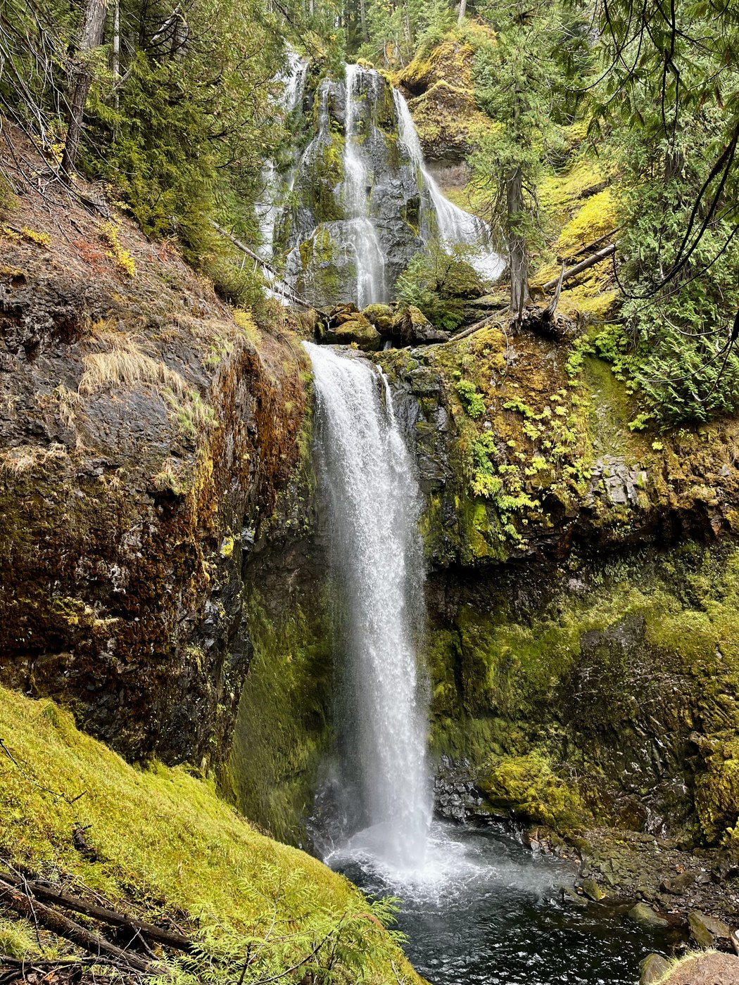 The trail was in great condition. There was a blow down about 1.25 miles from the trailhead but there is a way around it. The trail starts out very smooth and flat and later becomes rooty and rocky with a little bit of a climb to the waterfall. Good hike for children and dogs as well. Just keep an eye on them at the falls as there are steep drops. The fall colors were vibrant today and plenty of parking at the trailhead.