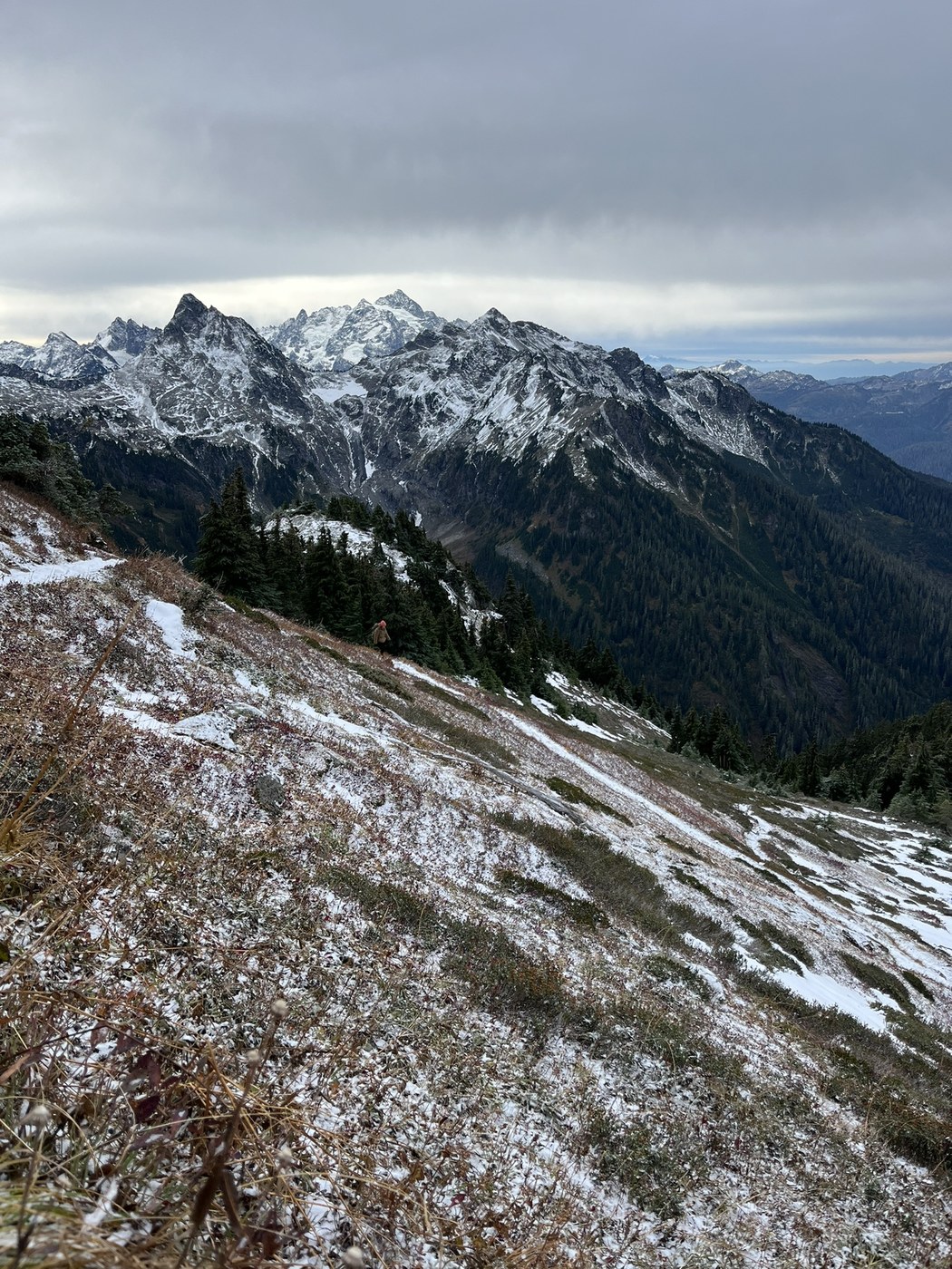 After hearing it snowed in the North Cascades I wasn’t sure we’d make it up. Road was the usual, high clearance required and slow up.
