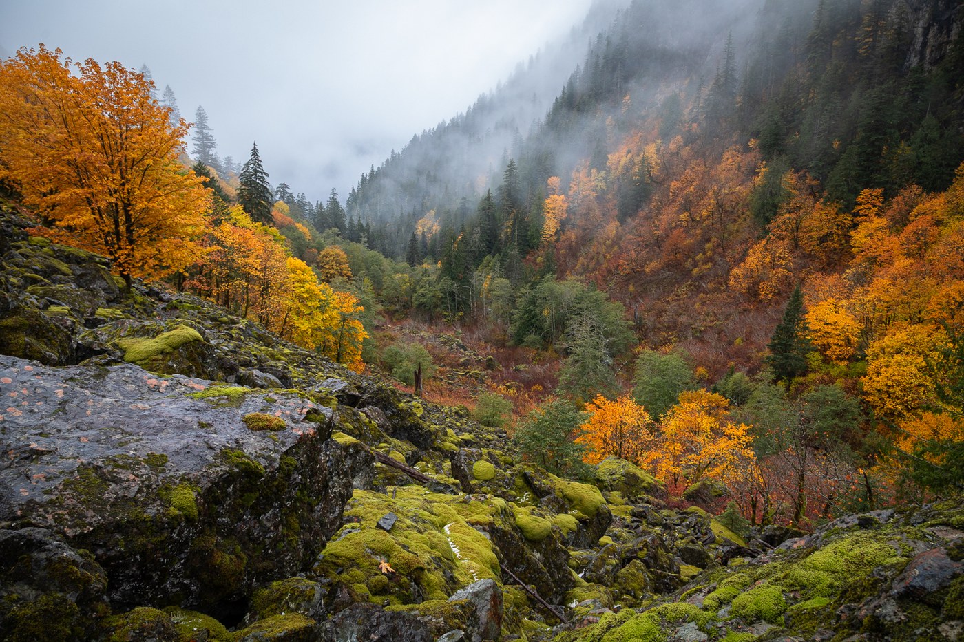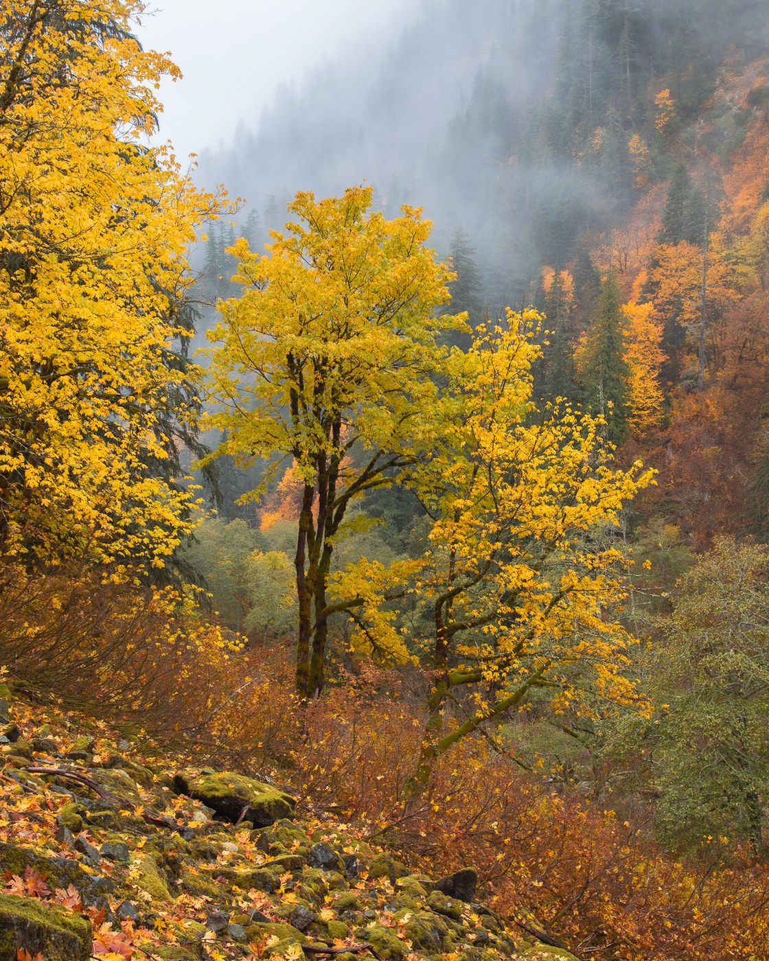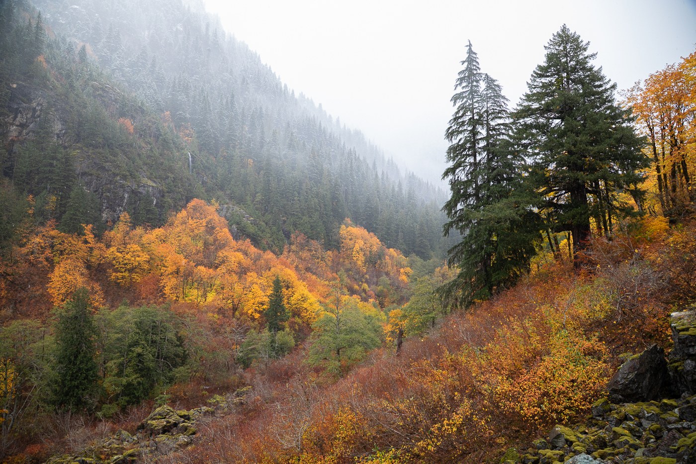 It was enough to cause our group of five to decide to turn around about 3/4 miles from the falls. We were concerned about slipping on the rocks, bigleaf maple leaves, and couple inches of snow. Time to throw the microspikes in my pack for the season.