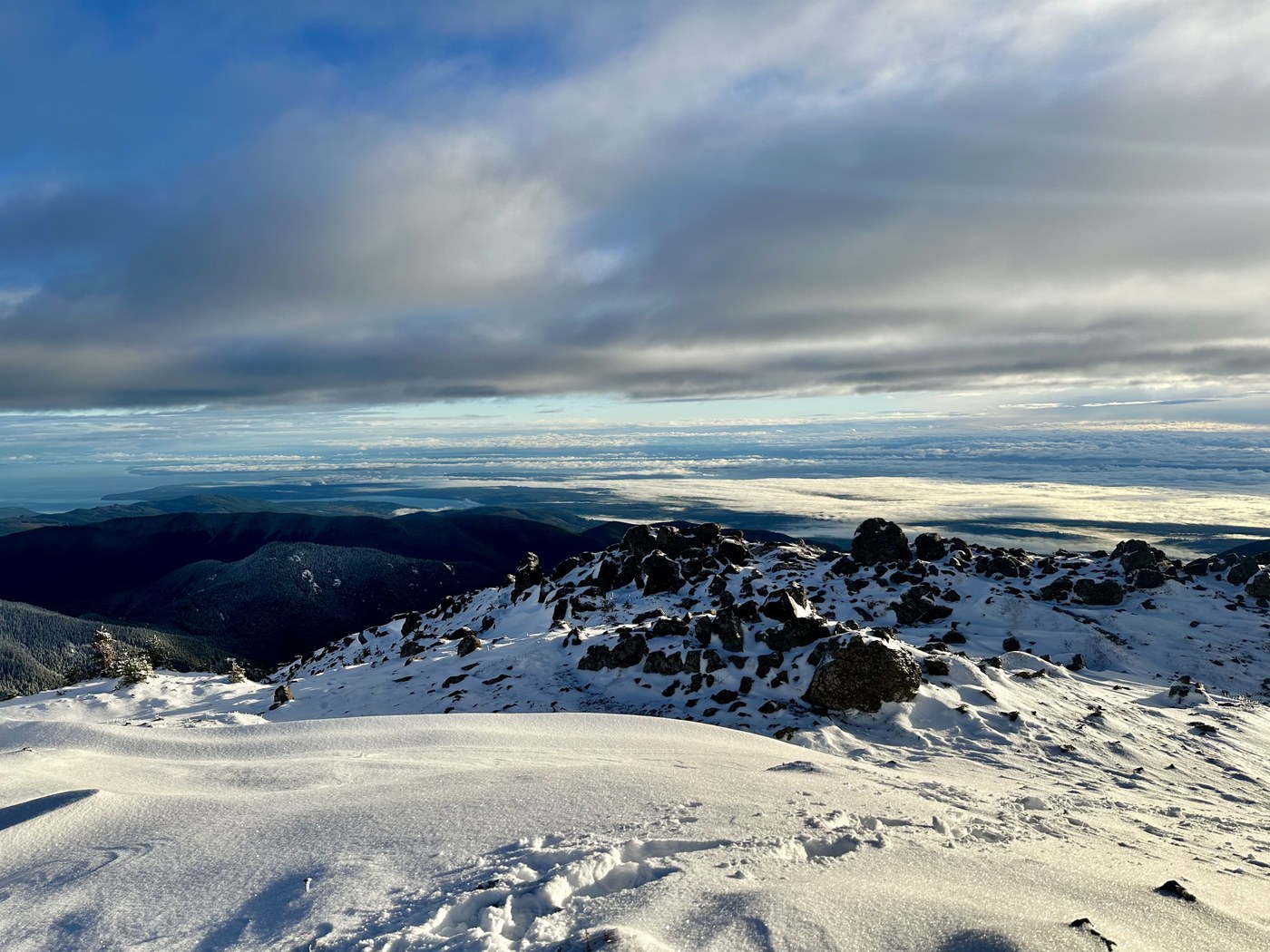 Early morning hike up main Mount Townsend trail (#839). Road in was fine. First car in upper trail head lot at 6:15 a.m. No snow until about 1.5 miles in. Gaiters nice to have, but not necessary. Did not need any traction devices. Crunchy snow on the way up, getting softer on the way down. Trail easy to follow. We passed 8 hikers coming up as we were going down. Beautiful day and some great views as usual 😎