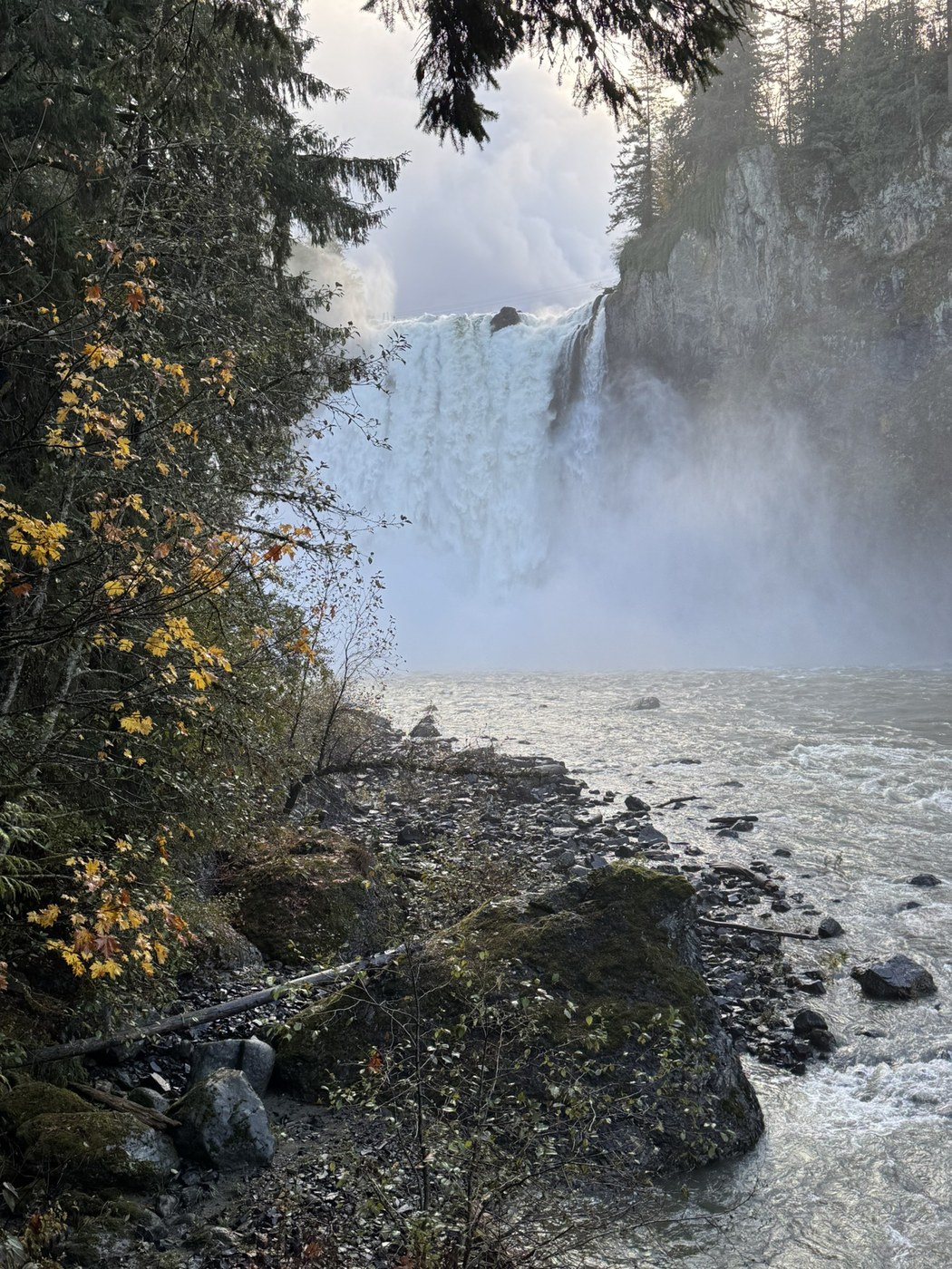 Amazing morning and falls were RAGING. Such a nice walk and some remnants of fall color and mushrooms. Perfect PNW morning!