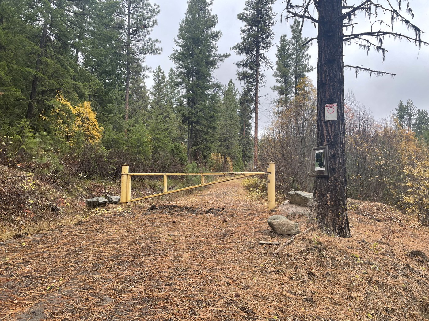 I drove to the parking area for the meadows and it's currently a staging area for some road work nearby. It's not possible to visit the meadows anyway without a special permit. The road behind the yellow DNR gate just beyond on the left leads up to the top of "Camas Mountain" which I walked instead.