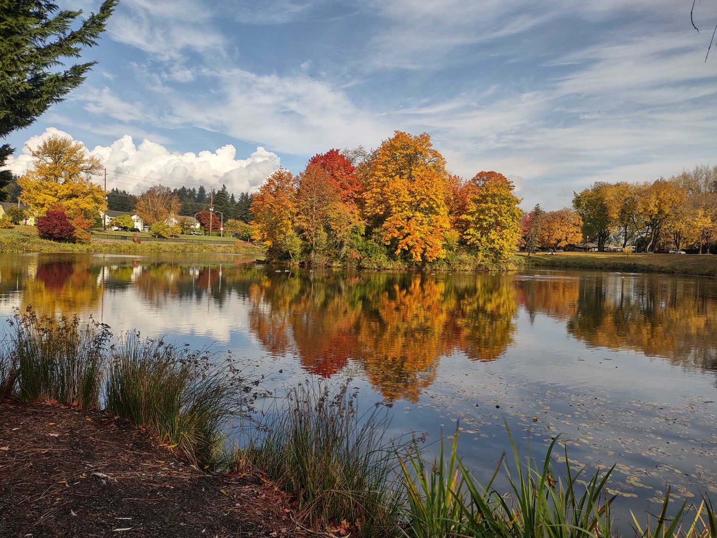 Absolutely beautiful fall color on the lake and so worth the detour from i5! We found ample parking available street side around the lake on a Monday afternoon. No bathrooms that we saw but we did not do the full loop. The trail is wide and level, just watch for geese and geese poop.