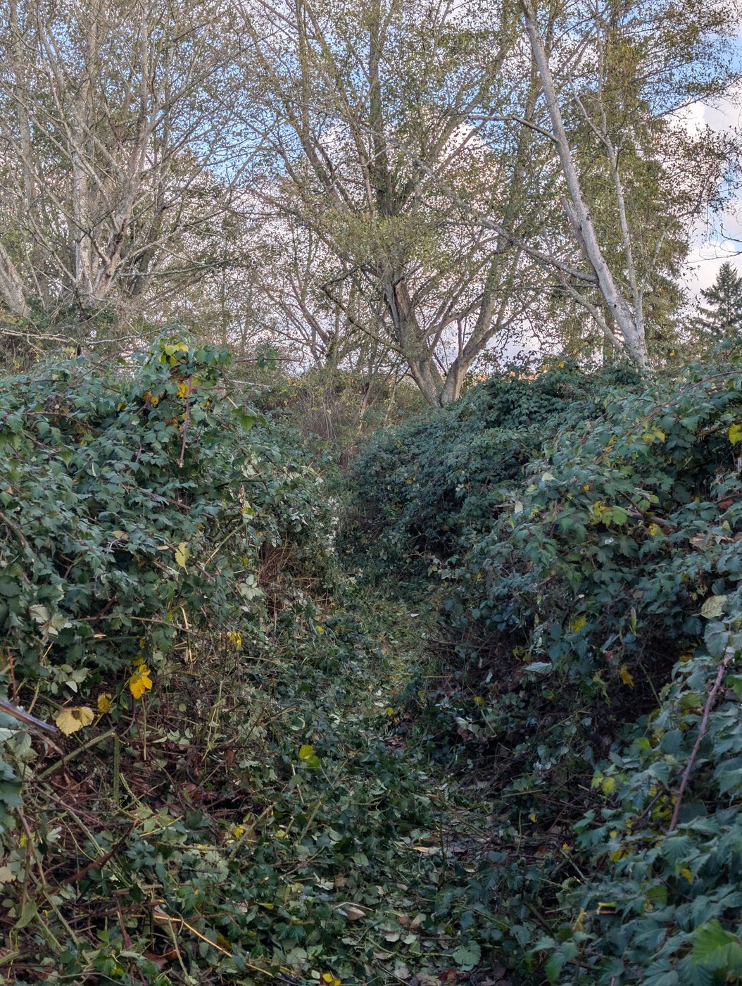 Ok, it wasn't all that bad. It's actually a handy little slice of nature - albeit surrounded by urban hustle and bustle. But what really brought me here was that I wanted to check out the "impassable" loop on Spencer Island. Many of the previous reports have mentioned how overgrown it is, but never had any photos. Since I enjoy a little trailwork, I thought I'd go see for myself. Well, I'm happy to report that someone beat me to it!