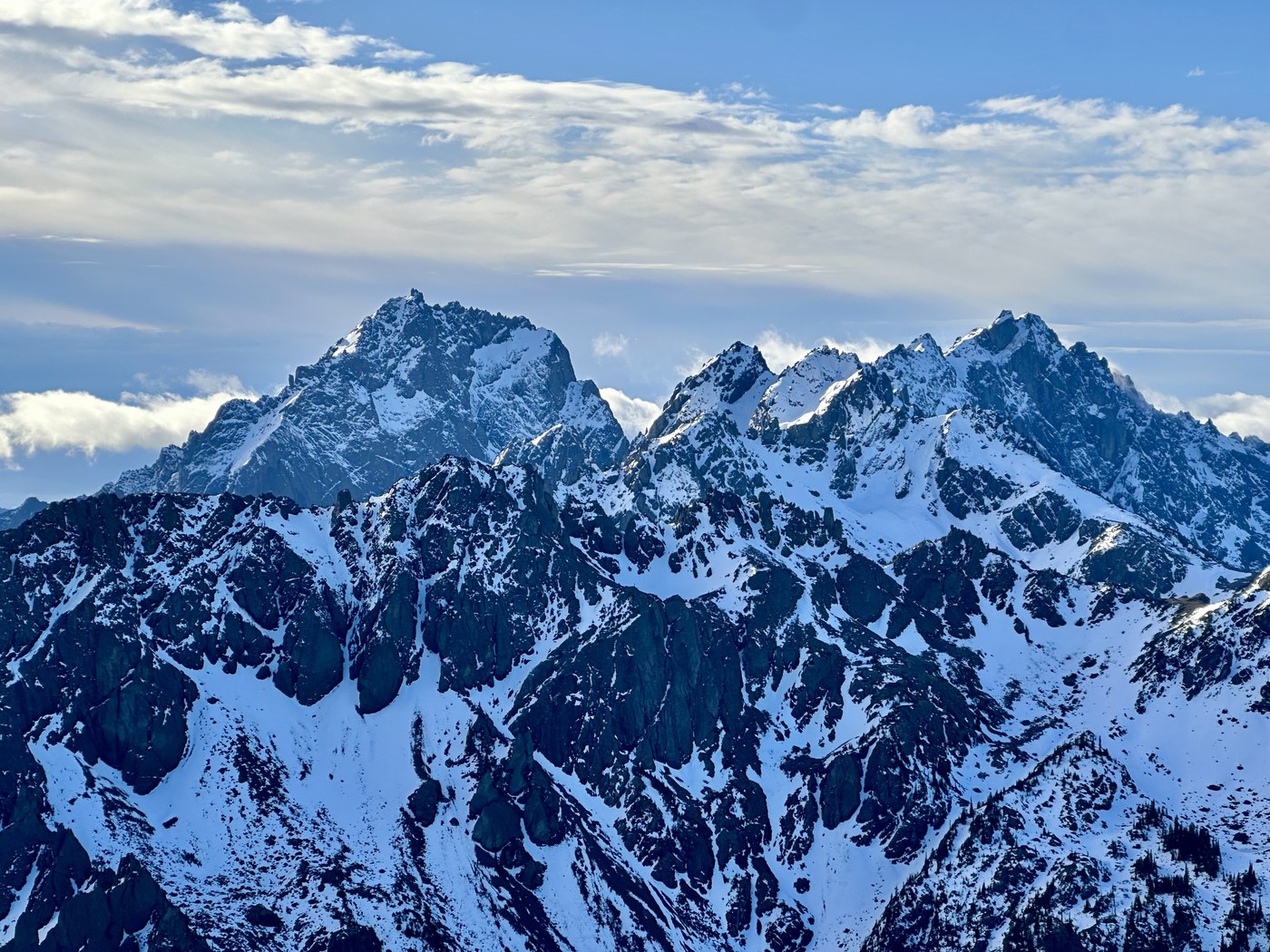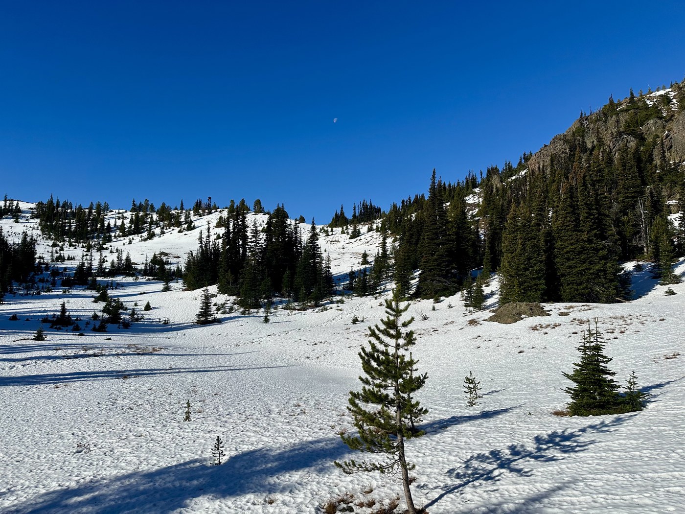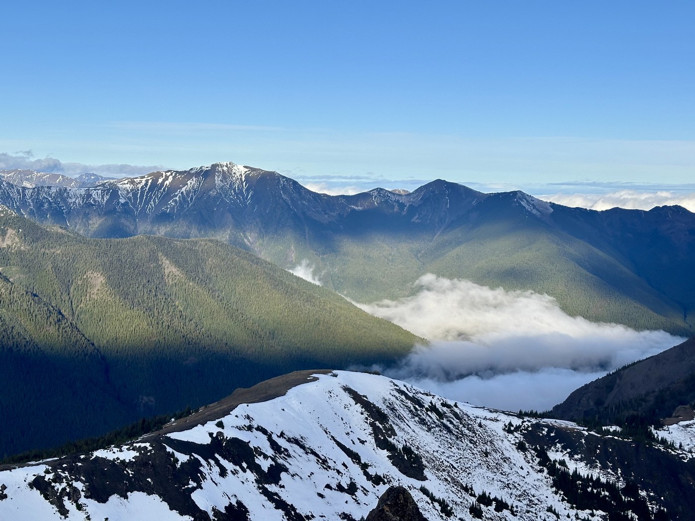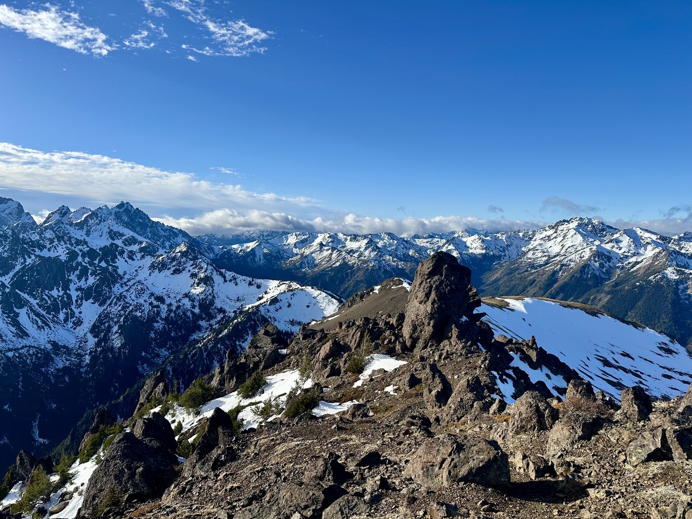 Trip report mainly to provide trail condition info. Hiked up to Marmot Pass, then on up from there to the peak of Buckhorn Mountain. Trail in pretty good shape. About 3-4 blowdowns to navigate. Only one was a little hard to get around. Not really any snow until Camp Mystery. Then the snow was icy and crunchy. I did not put my micro spikes on, but I would recommend them coming down from the pass to the camp if conditions are similar. Marmot Pass to Buckhorn peak was pretty clear of snow. Boot path disappeared occasionally, but no issues. Started in the rain, but it was sunny at the peak (with a cold North wind 🥶). Good hike. Saw no other hikers. I was the only car at the trailhead at 6 a.m, and the only car in the lot when I got back down at 12:30 p.m.