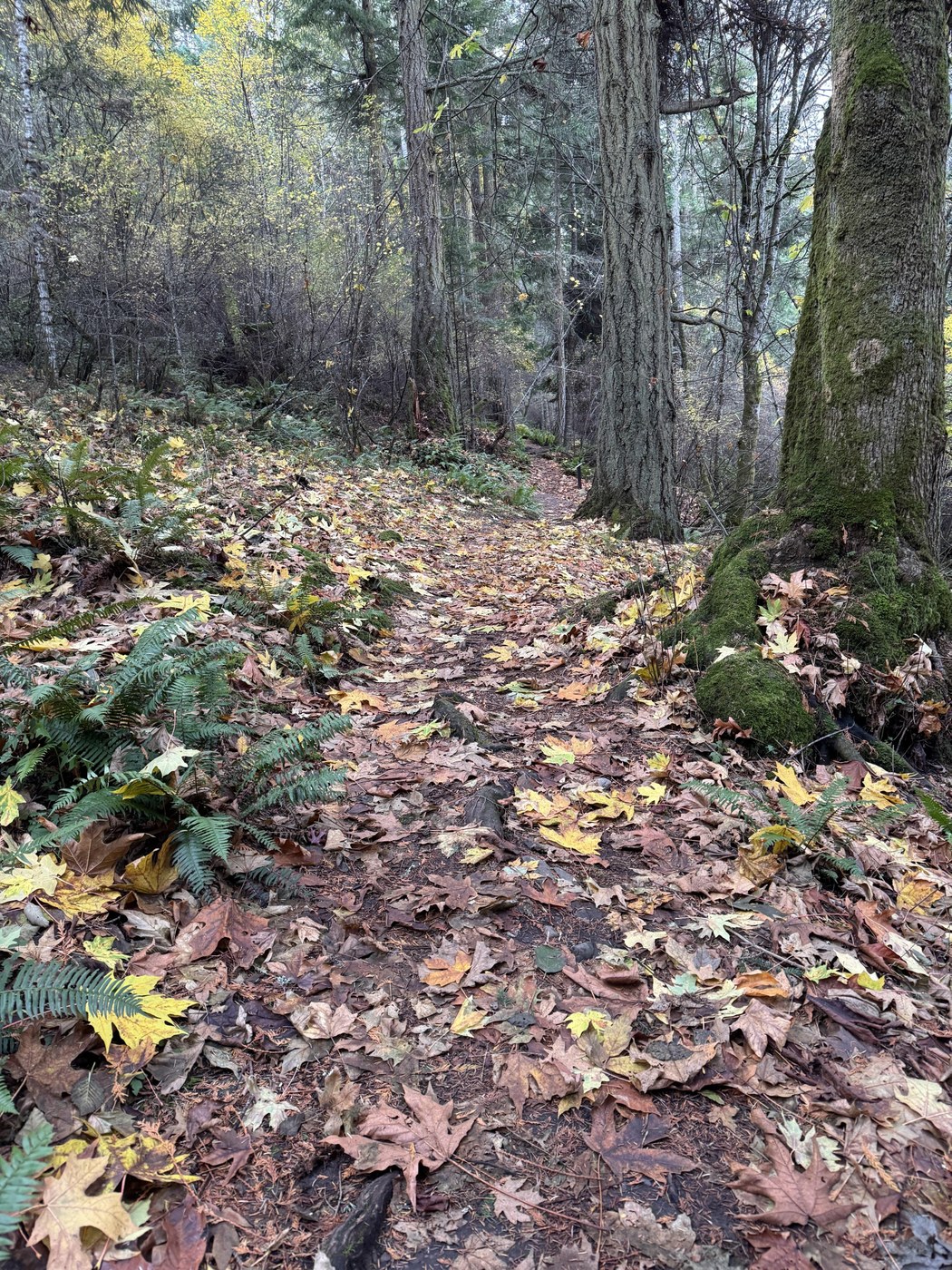 The path was wet dirt with various amount of tree litter throughout the hike. Lots of leaves and needles on the trail from the Cedars, Doug Firs, and Big Leaf Maple. Some impressive rocks along the way, too. As you progress, you can see the water through the trees from the trail. You’ll hear birds and frogs on the way to the campground.