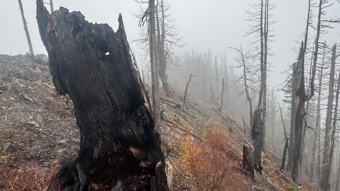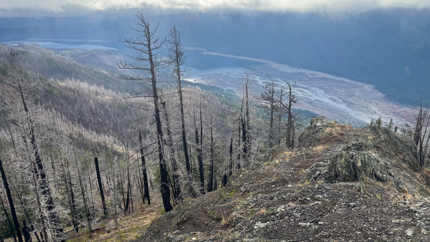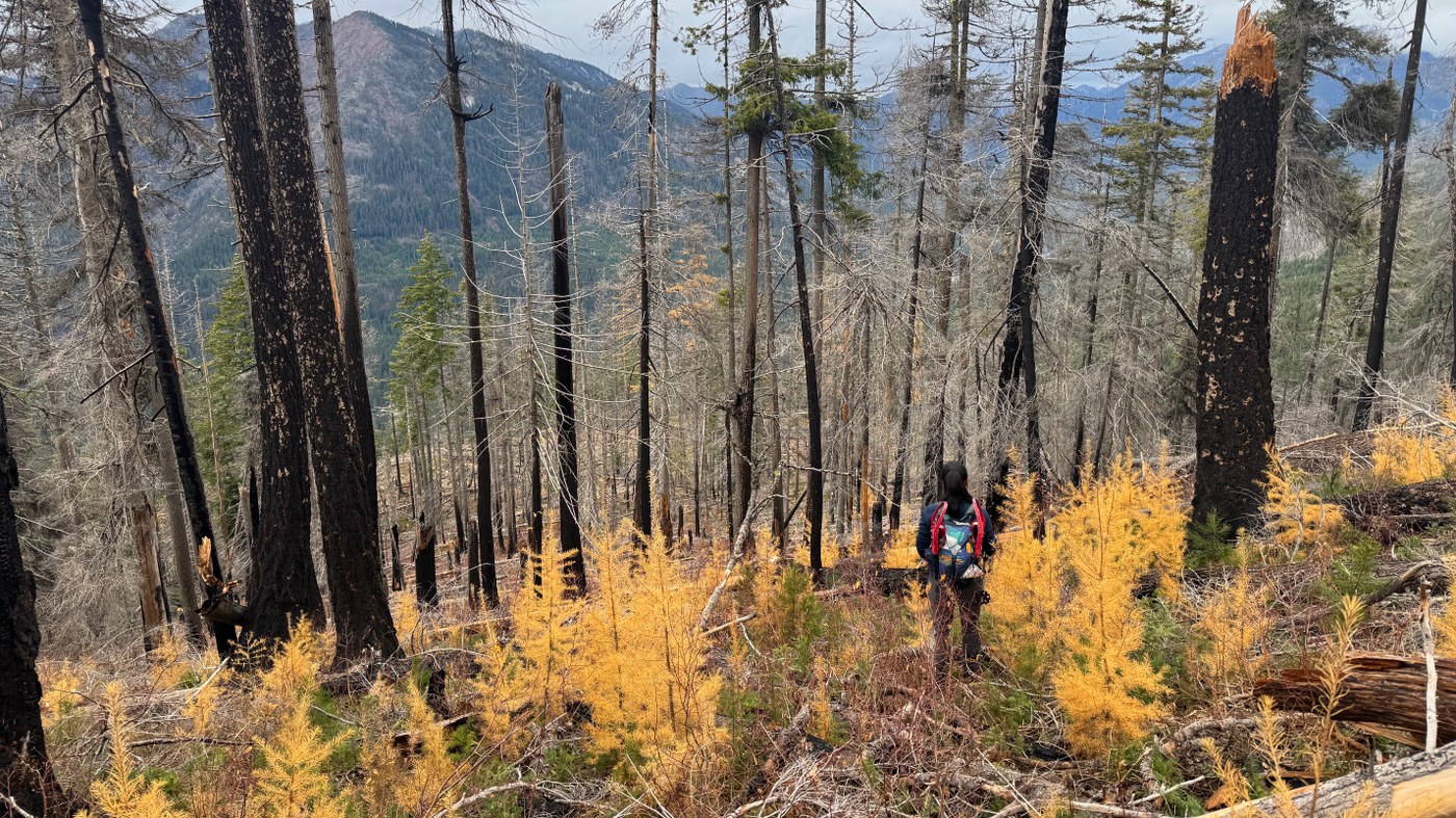 Apart from the initial logging road, and a couple small sections, the trail appears completely lost (unless the marked route is off). The Jolly fire in 2017 added insult to injury, so while the brush isn't thick it is frequent, there is plenty of burn/blowdown, devils club, and slippery talus, making for a hard ~2500' of off-trail to reach the one bit of nice trail starting around ~5000'