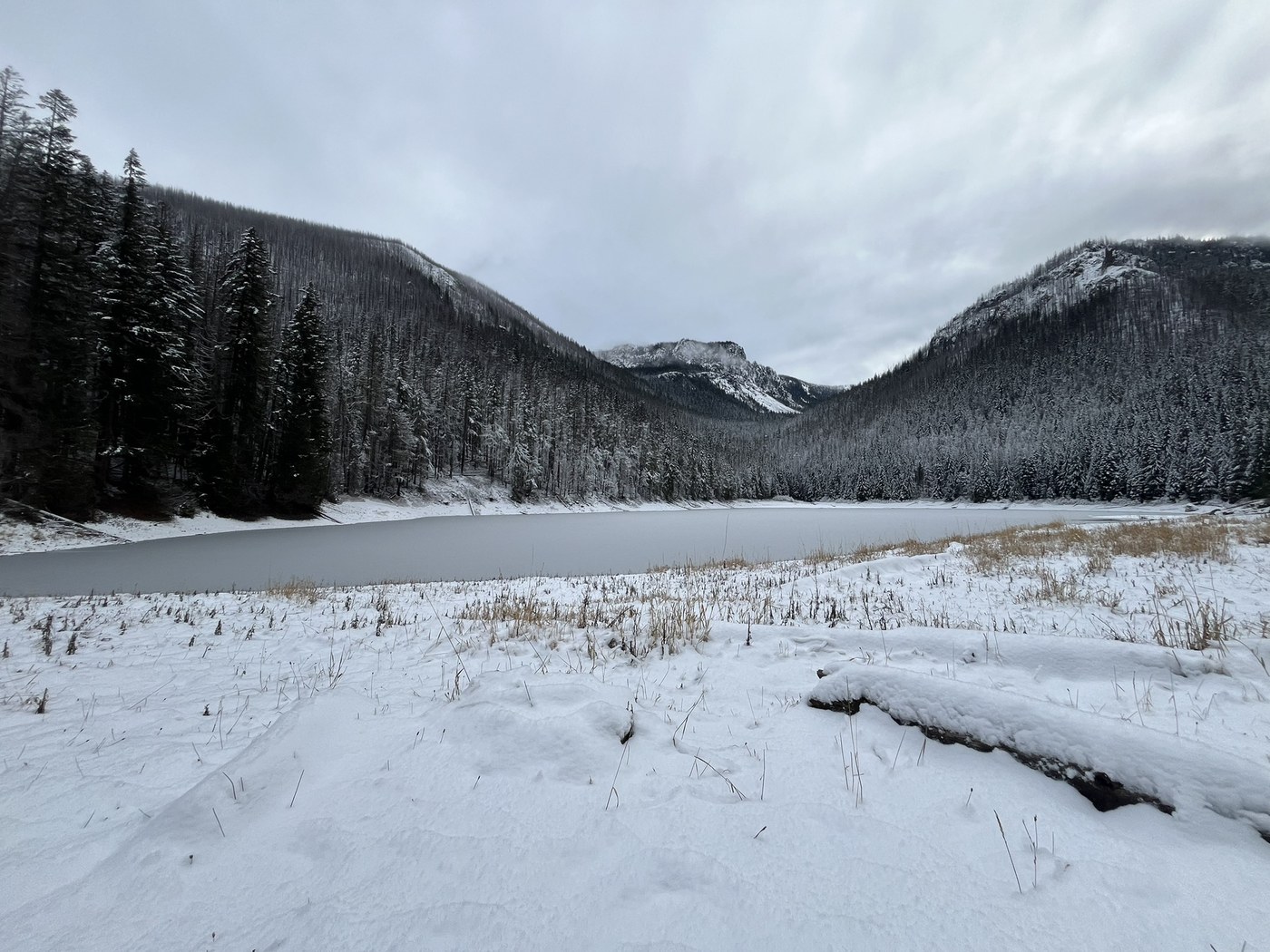 Beautiful early winter hike. Was originally only gonna hike 4 miles but somehow lost track of time and kept saying just 20 more minutes. Lake has ice on it, was able to stand on the edge with ice cracking here and there but didn’t fall in (I only went on it being okay breaking through and standing in 1 foot of water worse case)