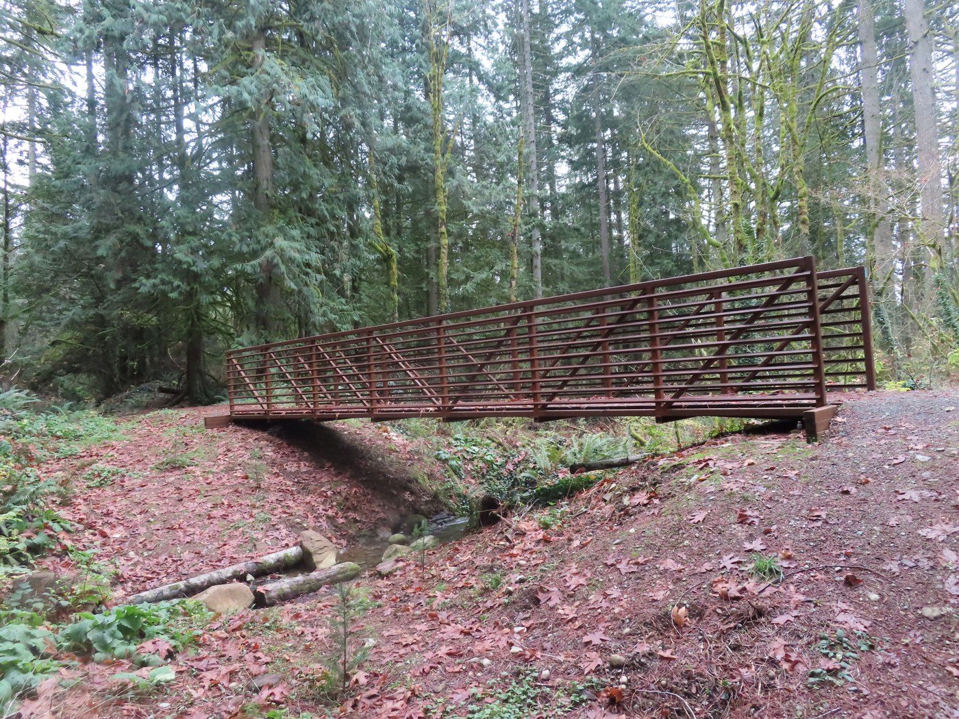 After doing my hike on the Hobart-Middle Tiger Railroad Trail, I had hiked the Connector Trail down to the Grand Canyon-15 Mile Creek Trail (see my other report for that trek) to hike this trail. I saw that the DNR had installed two new bridges. One is located just south of where the Connector Trail meets up with the 15 Mile Creek Trail. This trail is a former railroad grade used doing the coal mining days. I headed north going past the remains of the coal washery building cement concrete foundation. Further up the trail I came to the other new DNR bridge that replaced the old wooden one that had fallen apart several years ago. The new one is a steel truss design built by Continental Bridge in 2023 but not installed until this year. It would have been flown in via a heavy lift helicopter. It has a 1,000 lb. point load and a 90 PSF live load, so any hiker can go across it!