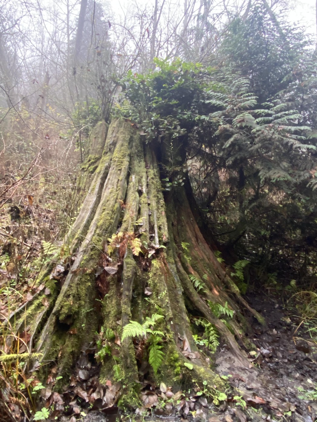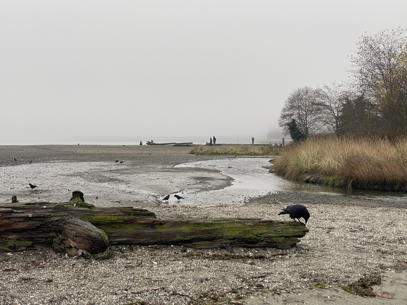 Mid-winter dreariness hung heavy in the ravines. Water gurgles through Pipers Creek. Many people out training their dogs and wet trail-running.