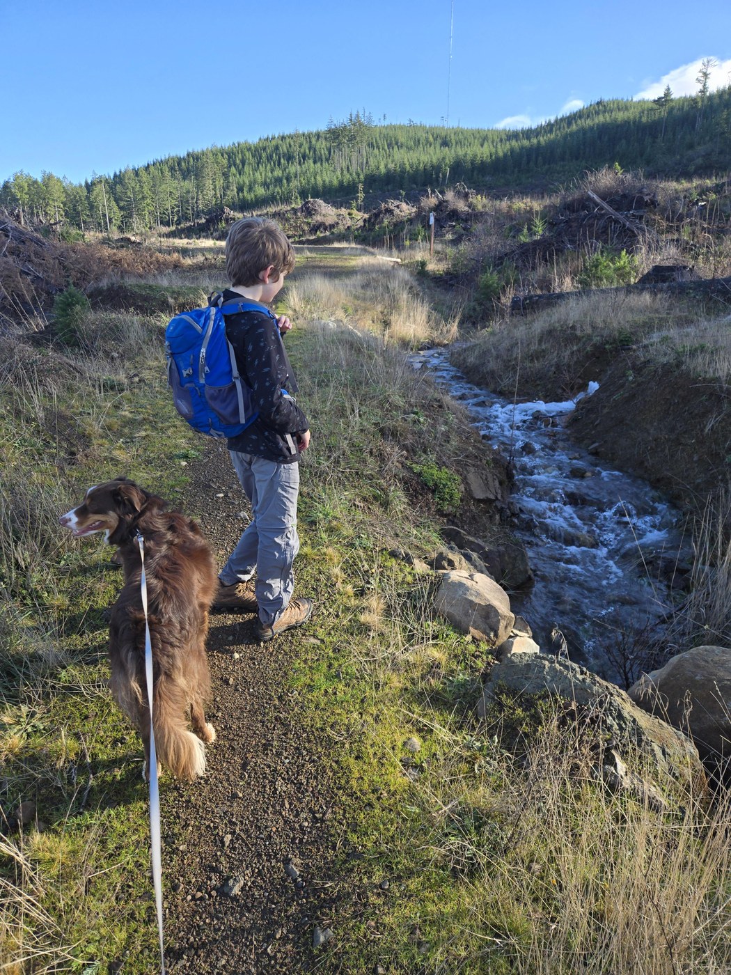 Took advantage of a no school day (thanks power outage!) to spend an afternoon walking in the sunshine. Well, mostly forest, but the sunshine on our faces through the clearcut felt lovely.