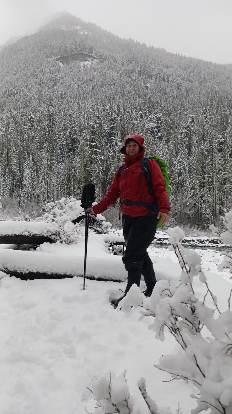 Snow covered at Longmire. Snow - rain mix all day but still nice to be out! Trees down but most easy enough but a few required crawling . Nisqually River is incredibly full and not sure if the log bridge across it will survive! We got close to the Cougar Rock Campground but stopped at a jumble of trees across the trail. Water water everywhere!