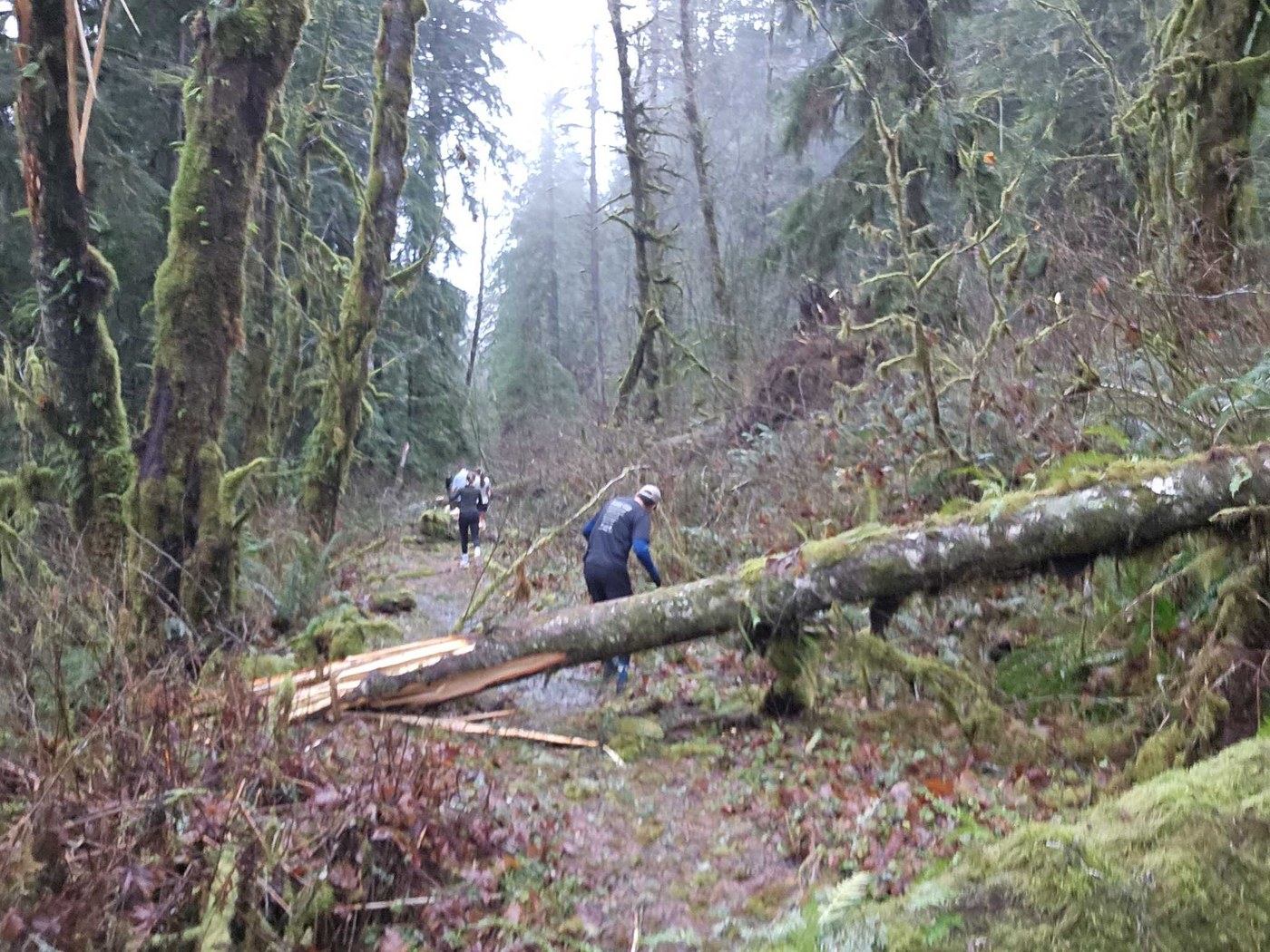 I was surprised with how good the trail was up to the lime kiln. There were several downed trees but were all easily navigable. That is, until just past the kiln. There was a section with lots of big trees down over the trail. Since we were trying to run, we didn't keep going. Water and mud in the usual places.