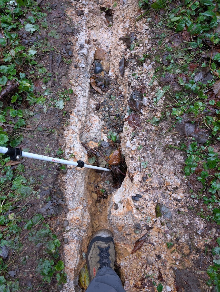 There is lots of erosion in some of the trails, be careful of post holing when we get some snow. In some areas the streams are still flowing over the trail, in one area I was able to divert it into the side hill of the trail by digging a foot length of dirt and rock with my hiking pole, but a shovel will quickly fix this - the water is not getting to the side ditches or hills.