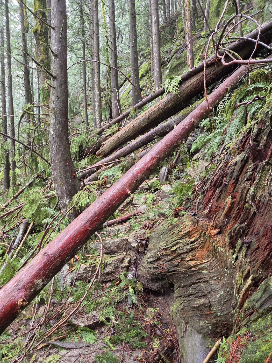 Decided to get breakfast in Skykomish to help support local businesses affected by the Highway 2 closure. Sunday was a buffet so we had to walk it off naturally, and Heybrook Ridge seemed like a good place to do that. We made it approximately 0.6 miles up the trail before running into a group of trees downed in a section we decided was not passable for us. Someone has been working on clearing fallen logs and we removed what branches we could up until that point. Stopped for coffee at the Bush House Inn. Looking forward to going back for their cinnamon rolls.