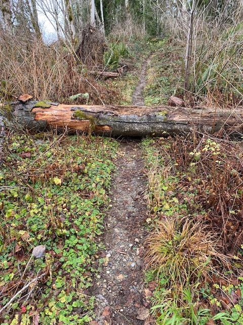 The weather was cold and dry, with no wind and a couple of very brief sunbreaks. Mt. Rainier was in the clouds, but nearer foothills were clearly visible from the viewpoint. I saw only three couples/pairs of hikers, each with a dog in tow. All in all it was a good choice for a hike in December.