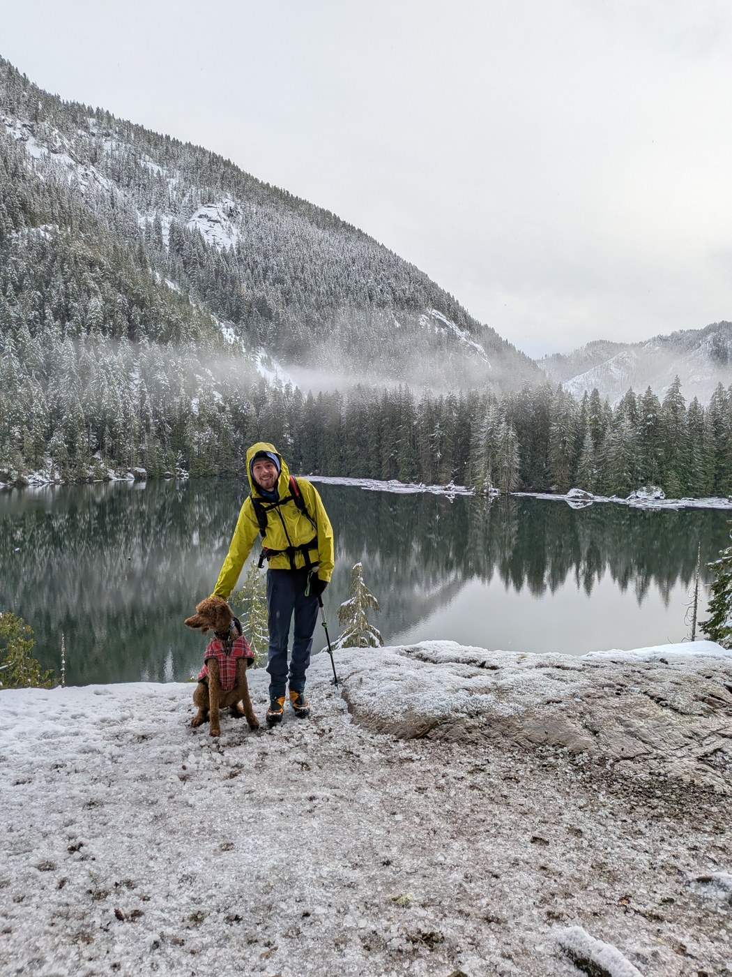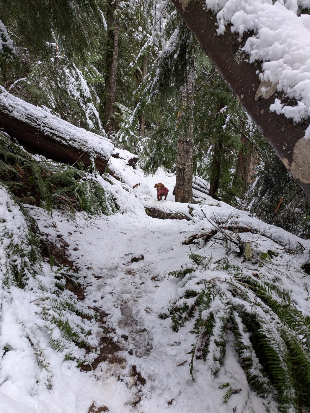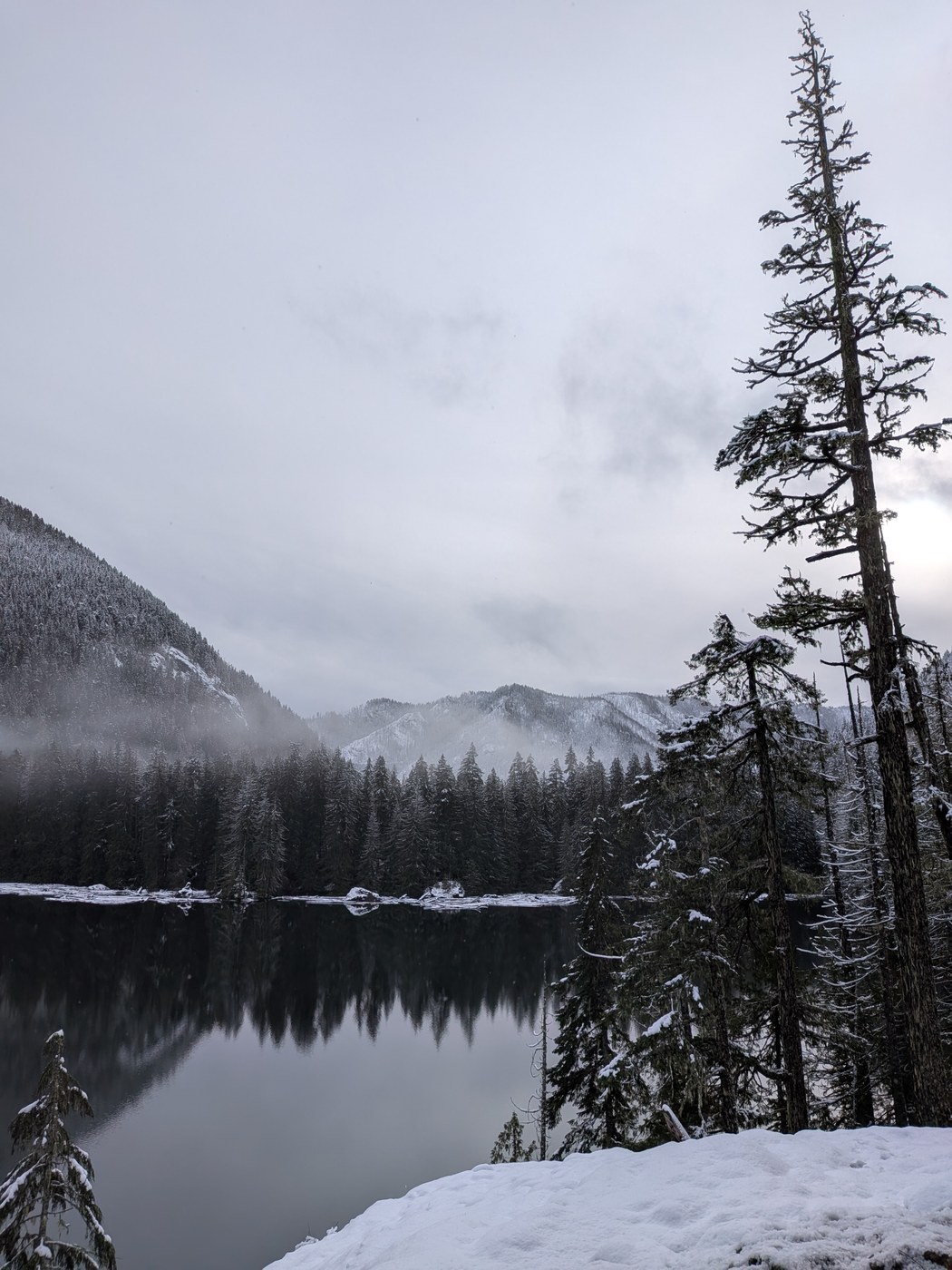 The road was completely snow free to the trailhead. The first mile of trail had a lot of water on it - parts of the trail are essentially a small creek right now. Higher up small amounts of snow start, and by the lake the snow is a few inches deep. We saw a few people on the trail, and there have been enough hikers that the snow at the top was pretty well packed down. Definitely doable with trail running shoes, although boots were nice to have. Met a couple hikers who had attempted Upper Lena Lake but said they turned around after losing the trail in waist-deep snow part way up. Wonderful day out in the mountains!