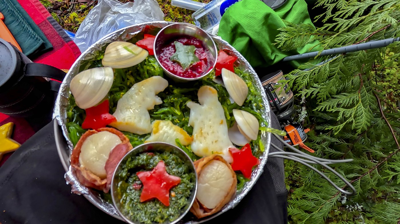 What a feast! I need to start hiking with a tarp and stove! Thanks for the inspiration.