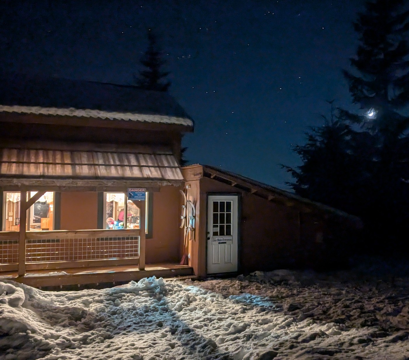 We also packed in a ton of goodies - gluten free cookies, Dilettante chocolate covered Rainier cherries, spicy hot cocoa, a bag of red wine and more, some of which are still there. Enjoy if there's anything left! We brought Rummy tiles, Scrabble and card games, but spent most of the first evening doing a 1000pc puzzle. It was a beautiful starry night with a crescent moon.