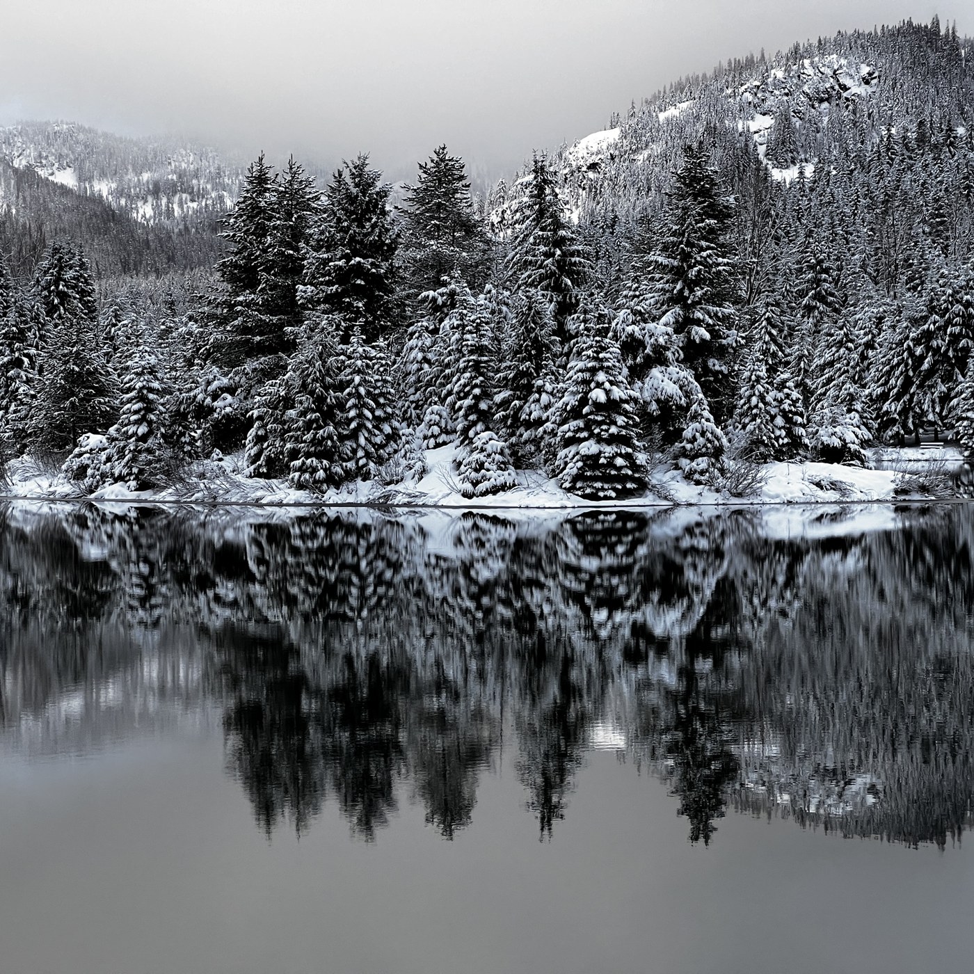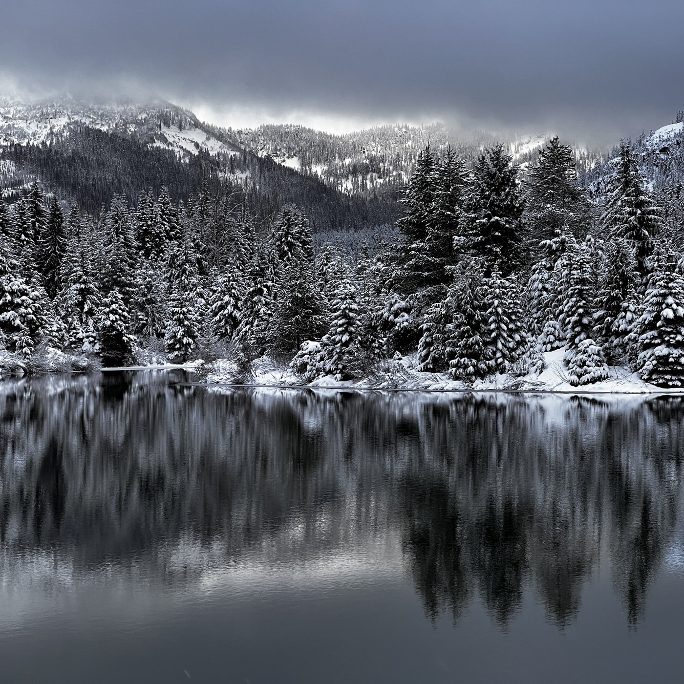 Arrived at 7.30am at the parking area. There were some cars that appeared to be parked overnight judging by the snow on them. 27F, low clouds, no wind, around 10in of fresh snow.