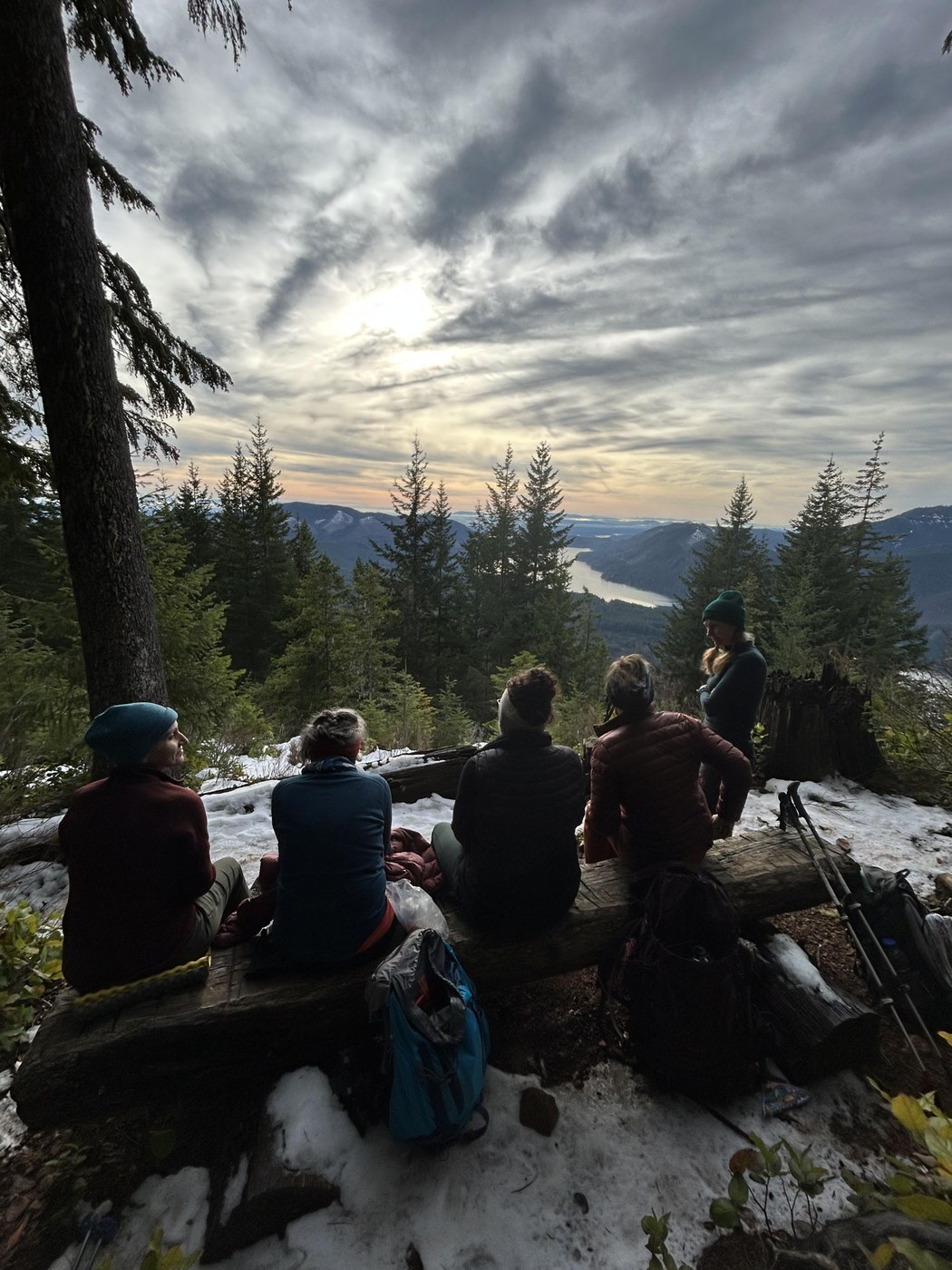 A trail crew was there doing maintenance— thank you! Our group hiked the loop counterclockwise and went to the Viewpoint for a snack break. It looked as if Lake Cushman had skim ice on it and the horizon was spectacular! Snow patches on the trail had started just before the Viewpoint. Continuing up to the Elinor Connector, we traveled on packed snow much of the way. In our group of six, two people put on their micro-spikes, the rest of us did not. We saw no one on the ascent. As we returned to the cars, we saw three other parties. Great day: 8.2 miles/4.5 hours