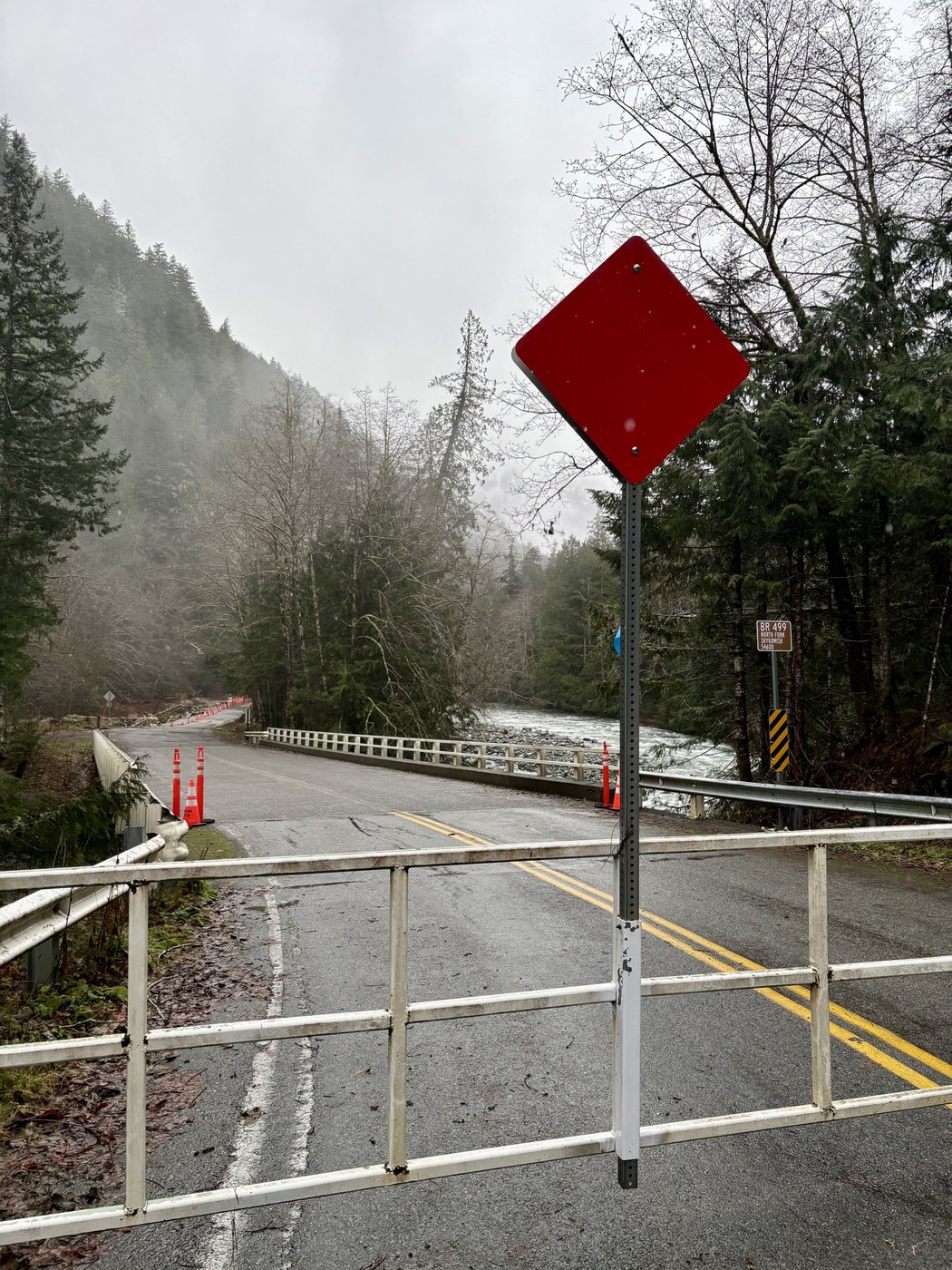 We drove out to Index to see where the Index Galena Road has closed after all of the rains. It appears to be just beyond the last bridge that crosses the river, maybe a mile or less from the campground. This sunken section part doesn't appear as major as the other section that is shown in a post by WTA on December 19th, 2025. (Unless that photo was from the 2006 washout?!?)