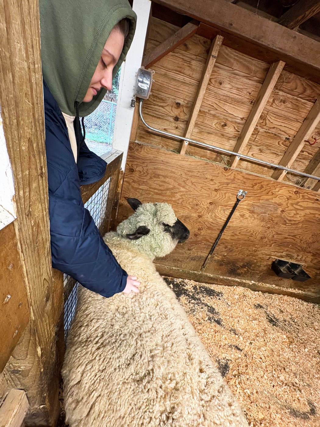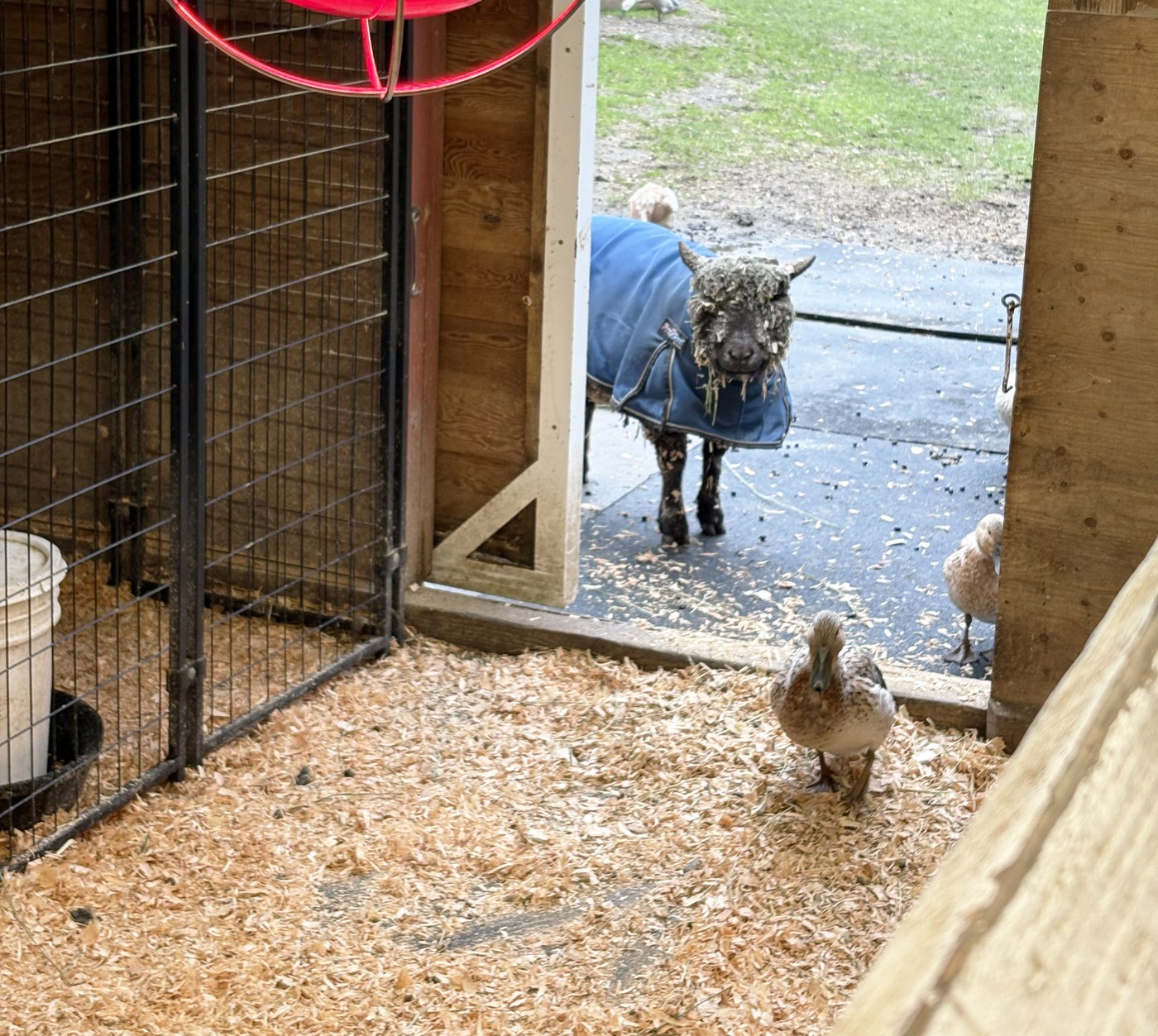 All the ponies were out getting brushed by the volunteers. The barn was full of new volunteers learning the ropes in with the goats. Theo got in a good long pet with one of the big sheep who thoroughly enjoyed it. He leaned into the fence with his eyes closed. I got in some scratches too, surprised by how deep/thick their coat is. The runner ducks were in and out, the goat Thunder was in by Rosie, as was the miniature donkey.