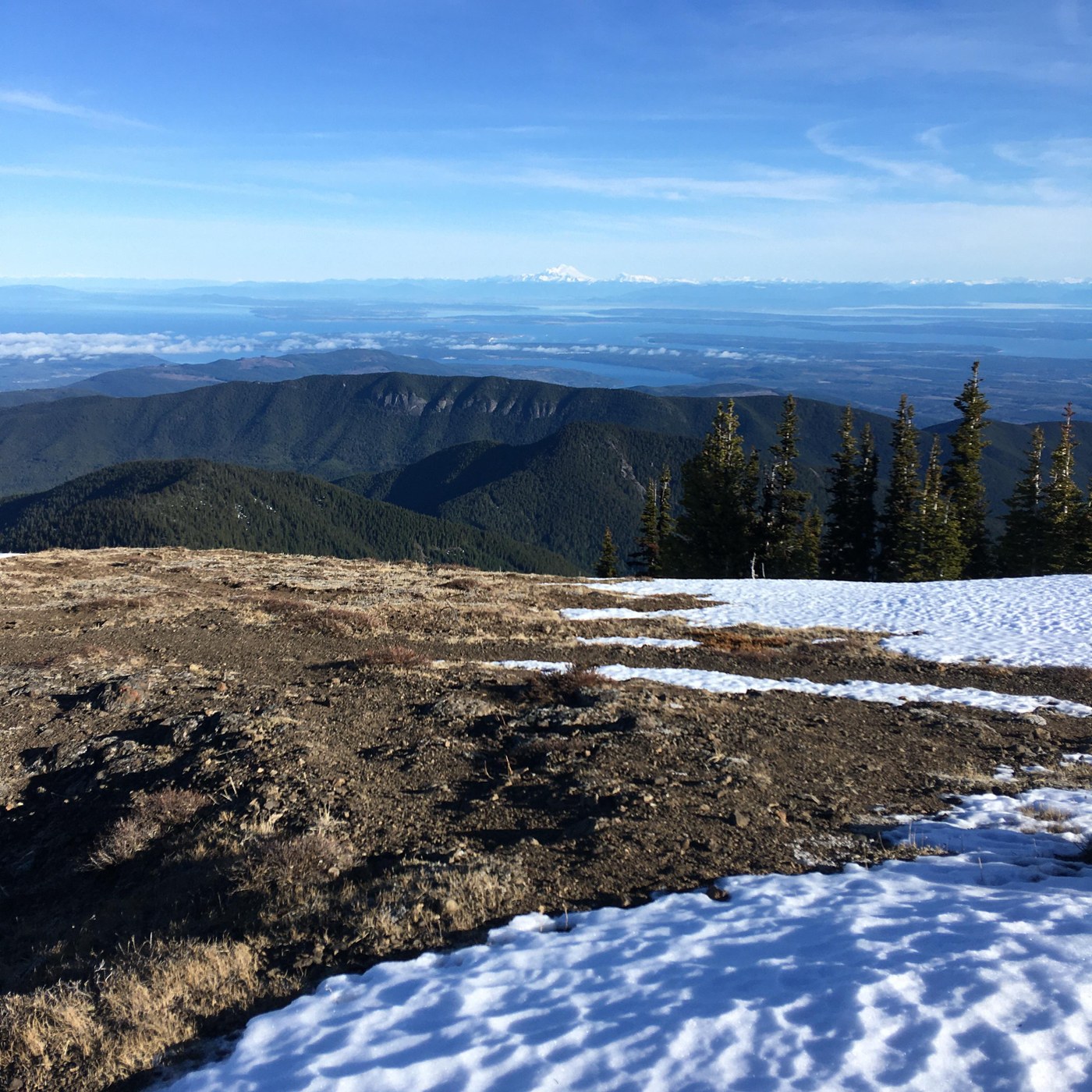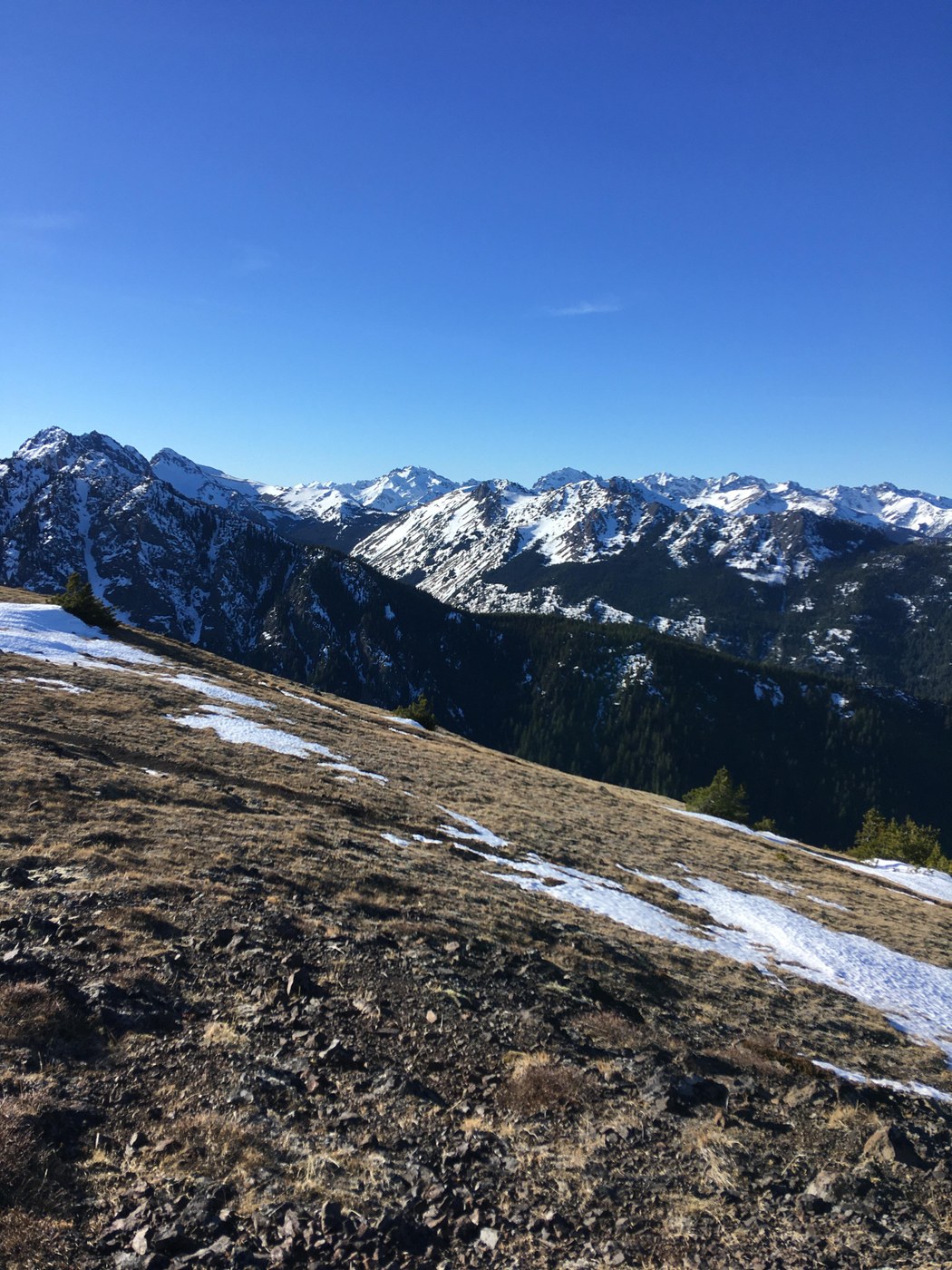 As recently reported, the ridge itself has snow here and there, but it's not difficult to traverse. Views today were incredible. Saw just 6 other hikers-although this weekend might be busier with the excellent weather forecasted.