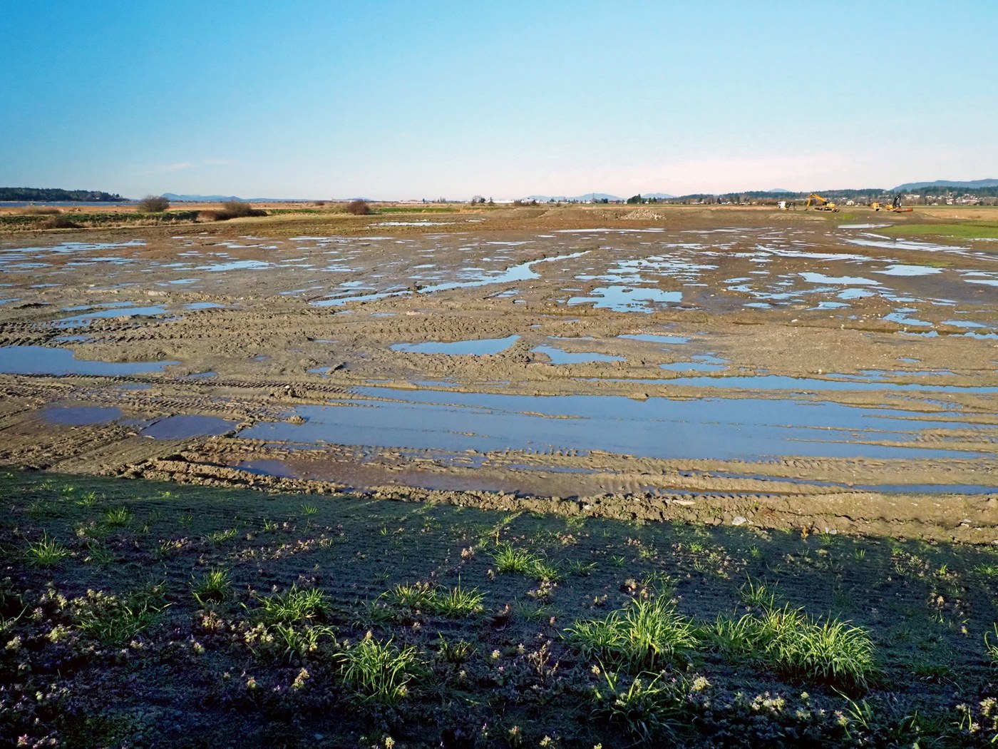 The transformation is a part of project by the Stillaguamish Tribe funded by NOAA to reestablish salmon habitat to what it was before the area was diked along Port Susan for farming in the late 19th century. Two miles of the old dikes are being removed along with some structures and install flood gates to allow water to pass through the dike. It appears that there will be access for hiking along the dikes. I have included a URL with information about the project.