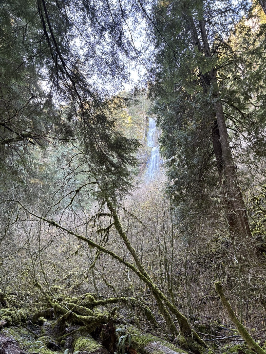 Started from FR73. Trail was quiet on the way to the waterfall at 10 am, busier on the way back. We didn’t do the scramble since it was cold and we were worried about our kids getting too chilled. One section of the trail in the first 1/2 mile looks as though it will collapse, take care to stay away from the edge. I took a photo. Lost a children’s “Head” purple mitten please comment if you find it we’ll come back out for it.