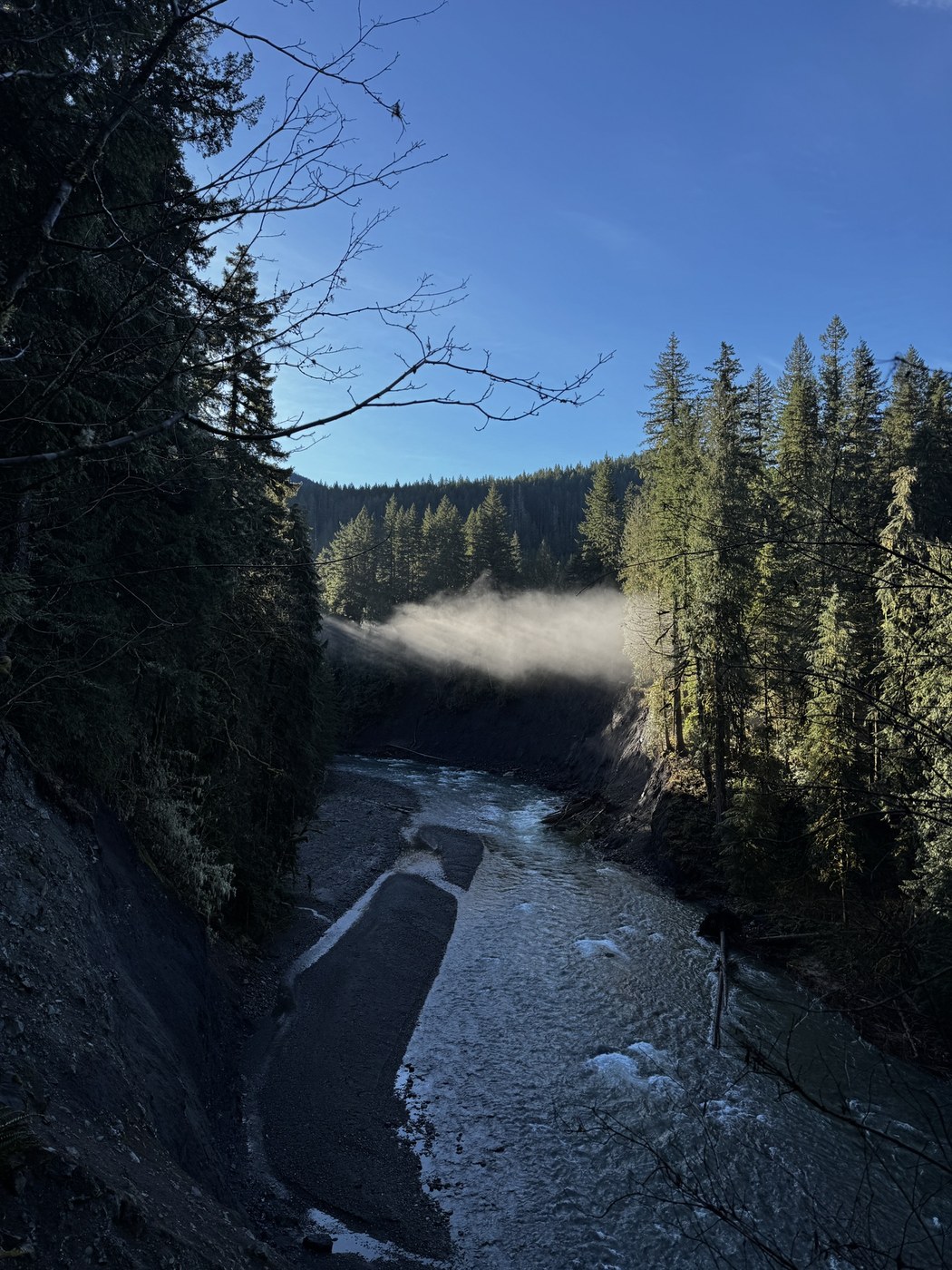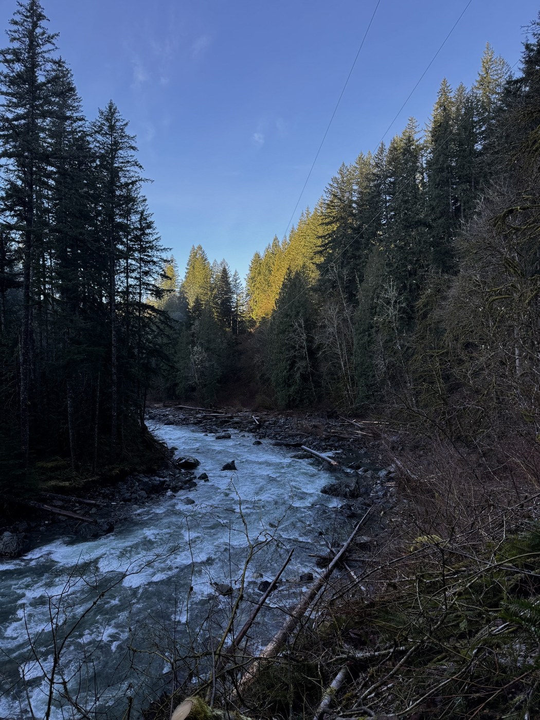 Trail was in good condition given the last storm and flooding. There were maybe two spots where we had to go over a fallen tree or around.