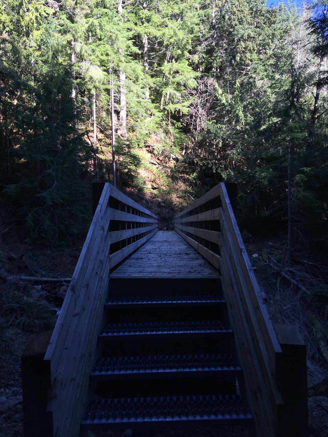 From here you will traverse up steep switchbacks over about 800ft in a mile or so to a newer bridge over Upper Brawling Creek.