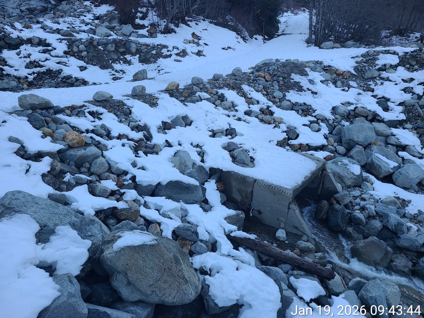 The road is currently open to cars to milepost 21, 1 mile past the Eldorado trailhead. A sedan can make it to mile 18, at the NP entrance. After that it's compact snow and ice with wheel ruts too deep for a sedan. We drove a CX 5 to the Eldo trailhead and ran up the road from there. The gate is open here, and 6 cars were parked at the locked gate at MP 21, just before the steep, paved switchbacks. Went up to MP 22, just above the creeks coming out of Boston Basin. To our complete surprise the culvert is not blocked and is functioning as intended. No road wash-out at all!!!